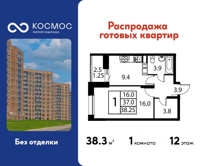 Продаётся 1-комнатная квартира в сданном доме (Корпус 1), срок сдачи: 2-кв. 2025, общей площадью 38.25 кв.м., на 12 этаже. ЖК "Космос" - новое место для жизни, в котором сочетаются отличная экология, удобное расположение, креативные решения архитектуры и функциональные планировки квартир. Строительство жилого комплекса ведётся при проектном финансировании Сбербанка. ЖК "Космос" расположен в микрорайоне Авиационный (Домодедово), в 24 километрах от МКАД по Каширскому шоссе. Проект будет состоять из 7 корпусов высотой 12 этажей. На первых этажах домов запланировано открытие необходимых для жителей объектов торговой и социальной инфраструктуры, в том числе магазинов, кафе, медицинского центра. В микрорайоне Авиационный также есть всё необходимое для комфортной жизни - здесь находятся детские сады, школы, высшие учебные заведения, магазины, поликлиники и медицинские центры, спортивный клуб, ТЦ "Торговый город". Помимо этого, жители ЖК "Космос" смогут пользоваться развитой инфраструктурой г.о. Домодедово - до него можно добраться за 20 минут на автомобиле или электричке. Одна из особенностей ЖК "Космос" - отличное экологическое состояние локации. В 10 минутах ходьбы от комплекса находится благоустроенный парк "Взлёт" с красивым прудом Лесным, здесь планируется дальнейшее благоустройство территории. Рядом с "Космосом", на площади Гагарина, будут проходить городские мероприятия. Проект отличается удобной транспортной доступностью - до МКАД можно добраться за 20-25 минут. Около жилого комплекса находятся остановки общественного транспорта, в пешей доступности - ж/д станция "Авиационная" Павелецкого направления. На придомовой территории ЖК "Космос" предусмотрено устройство парковочных мест численностью 544 машино-места, в том числе для маломобильных групп населения.