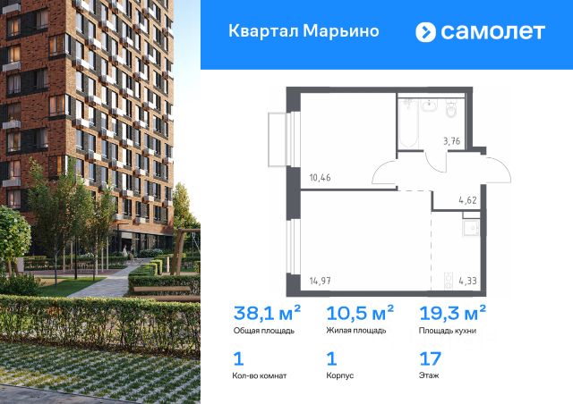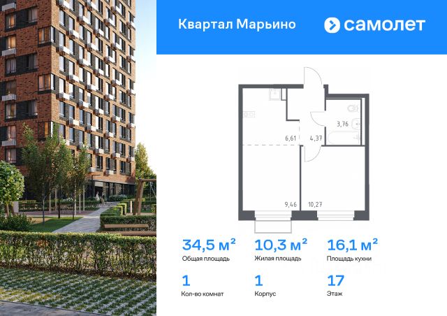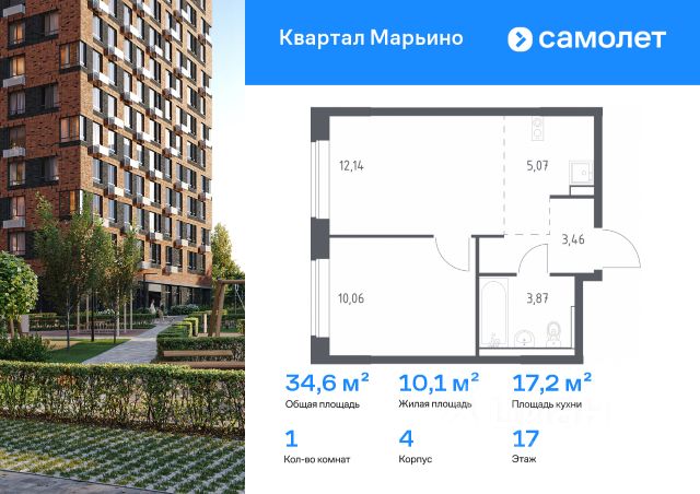 Строим кварталы для жизни с заботой о будущем. Предлагается 1-комнатная квартира комфорт-класса 33,94 кв.м в корпусе 2 на 17 этаже, в ЖК "Квартал Марьино" Квартира без отделки. Доступность опции "отделка" и возможность комплектации мебелью и декором уточняйте у застройщика. Приобрести квартиру возможно по специальным акциям от застройщика, с текущими условиями акций можно ознакомиться в блоке "Акций". Цена динамическая и может отличаться, уточняйте актуальность у застройщика. "Квартал Марьино" — проект в Новой Москве, в 18 км от МКАД, вблизи Валуевского лесопарка. Здесь будет все, чтобы получать удовольствие от жизни: приватные дворы-парки без машин, инфраструктура в шаговой доступности и общественные пространства для разнообразных занятий на свежем воздухе. До станции метро "Филатов луг" — 15 минут на машине по Филимонковскому шоссе. Живописные места для отдыха на природе — на расстоянии 2-5 км от дома. На территории будут построены 6 детских садов, 4 школы, поликлиника и спортивный комплекс, а также кафе, магазины и салоны красоты на первых этажах жилых домов. В закрытых дворах-парках предусмотрены игровые площадки, лужайки для пикников и йоги. Пространства для спокойного отдыха будут огорожены живыми изгородями. Дизайн-код проекта — "Полевые цветы". Он прослеживается в каждой детали — от натуральных оттенков фасадов до элементов благоустройства в эко-стиле.