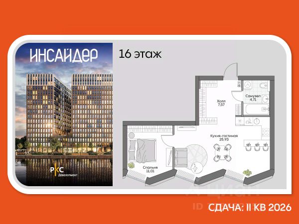 Продаётся 1-комнатная квартира в сданном доме (Автозаводская, 23с120 (Корпус 7.2)), срок сдачи: I-кв. 2022, общей площадью 38.5 кв.м., на 15 этаже. Расположение, транспортная доступность