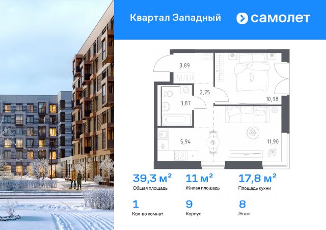 Строим кварталы для жизни с заботой о будущем. Предлагается 1-комнатная квартира комфорт-класса 43,03 кв.м в корпусе 9 на 8 этаже, в ЖК "Квартал Западный" Квартира без отделки. Доступность опции "отделка" и возможность комплектации мебелью и декором уточняйте у застройщика. Приобрести квартиру возможно по специальным акциям от застройщика, с текущими условиями акций можно ознакомиться в блоке "Акций". Цена динамическая и может отличаться, уточняйте актуальность у застройщика. Жилой комплекс в окружении лесопарков и рядом с рекой. До станции МЦД-4 "Санино" можно дойти пешком за 7 минут, а на территории проекта появится транспортно-пересадочный узел с торговым центром. Для жителей построят школу, 2 детсада, в одном из которых будут развивающие кабинеты-трансформеры. Дворы — тихое зеленое пространство без машин. В проекте появится собственный ландшафтный парк с благоустроенной набережной и центральная площадь, на которой будут проводиться различные мероприятия. Высота домов — от 5 до 15 этажей. Фасады выполняют в естественных оттенках, в соответствии с дизайн-кодом "Полевой луг". У каждой секции — свое цветовое решение. Белый цвет верхних этажей добавляет застройке легкости. Фасады облицованы клинкерным глазурованным кирпичом, который используют в проектах бизнес-класса.
