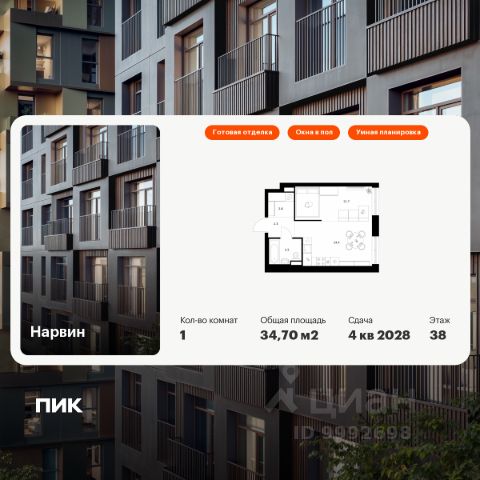 Продаётся 1-комн. квартира площадью 39,1 кв.м на 12 этаже 12 этажного дома (Корпус 1.1.1, Секция 1) проекта ПИК Кронштадтский 9. Светлый просторный подъезд на уровне земли, функциональная планировка, большие окна, предчистовая отделка. Жилой квартал "Кронштадтский 9" возводится в Головинском — в одном из районов с лучшей экологией в Москве. Совсем рядом станция метро "Водный стадион" — до неё 3 минуты пешком. Поездка на машине до Ленинградского шоссе займёт 2 минуты, до ТТК — 10 минут, а до МКАД — 16 минут. Недалеко от жилого квартала находятся парки и пруды — спокойные места для прогулок и отдыха. В "Кронштадтском 9" можно купить квартиру в уже готовом корпусе и сразу получить ключи. В проект входит 10 корпусов с просторными и светлыми подъездами, два детских сада и подземный паркинг. Внутри квартала будут уютные дворы-парки с детскими площадками и местами для отдыха. А чуть дальше, чтобы шум не беспокоил жителей домов, мы построим спортивные площадки. Во всех квартирах в этом проекте предчистовая отделка, с которой легче реализовать ваши дизайнерские идеи. В районе, где строится "Кронштадтский 9", есть всё для комфортной жизни: школы, сады, вузы, магазины и крупные торговые центры "Водный" и "Метрополис". В 15 минутах ходьбы — парк у Головинских прудов, в 18 минутах — парк "Дружба". Оба для прогулок, пробежек и отдыха от дома и работы. Ключевая особенность новых корпусов проекта — это особый архитектурный образ, разработанный бюро М.А.М. Здания привлекают внимание контрастом светлых фасадных поверхностей с тёмными, более детализированными элементами. Архитектурные приёмы формируют связь с городским контекстом: низкоэтажные корпуса естественно вписываются в окружающий ландшафт, в то время как 32-этажная башня добавляет вертикальный акцент, усиливающий общий облик квартала. В "Кронштадтском 9" умные планировки: вы сами выбираете, как их использовать, чтобы ваша квартира была максимально комфортной именно для вас. Например, постирочная может стать студией звукозаписи, а зона для гардероба — кабинетом. В новых корпусах есть квартиры с кухней-нишей, сквозным санузлом и мастер-спальней с собственной ванной. Квартиры продаются с предчистовой отделкой. Это значит, что к моменту получения ключей в доме уже закончатся самые грязные и шумные работы, а вам будет легче реализовать дизайнерские идеи. Рядом с проектом есть всё необходимое. В паре минут пешком — торговые центры "Гавань" и "Водный", а в 7 минутах на машине — большой ТРЦ "Флотилия". В шаговой доступности аптеки и детская городская поликлиника. Доехать до взрослой поликлиники можно за несколько минут. Вокруг несколько интересных мест для прогулок, в том числе с детьми. Можно арендовать лодку или просто понаблюдать за плывущими яхтами и парусниками на Северном речном вокзале, побродить по парку возле усадьбы Грачёвки или сходить в музей охоты и рыболовства. Артикул 967374 (Застройщик АО "Специализированный застройщик МАК8")