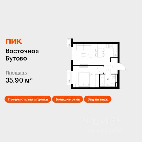 Продаётся 1-комн. квартира площадью 32,2 кв.м на 17 этаже 17 этажного дома (Корпус 48, Секция 1) проекта ПИК Восточное Бутово. Светлый просторный подъезд на уровне земли, функциональная планировка, большие окна, предчистовая отделка. Жилой квартал "Восточное Бутово" расположен в 5 км от МКАД по Симферопольскому шоссе, в Ленинском районе Московской области. Это экологически благоприятное место по соседству с Бутовским лесопарком. В 25 минутах на машине - станции метро и МЦД "Бутово". В "Восточном Бутово" уже открылись пять детских садов из десяти запланированных и одна школа из четырёх. Внутри квартала будет две поликлиники, одна из которых уже работает. В проекте два пешеходных бульвара - по одному из них уже можно гулять и кататься на велосипеде. В закрытых дворах-парках не будет автомобилей - мы построим многоуровневый паркинг, чтобы сделать район ещё более комфортным и безопасным для жителей. Артикул 641719 (Застройщик ООО "Лотан")