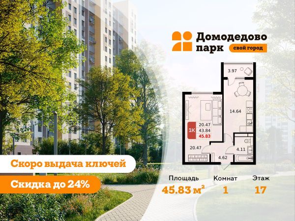 Выгода до 24%. Срок сдачи 2026 год. Продажа напрямую от застройщика в жилом комплексе комфорт класса "Домодедово парк" площадью 41.64 кв.м на 17 этаже 17 этажного дома. Квартира с предчистовой отделкой. Квартиры • Продуманные планировочные решения обеспечивают максимум естественного света. • Свободная планировка позволяет воплотить любые дизайнерские идеи. • Высота потолков в чистоте — 2,72 м. • Двухкамерные стеклопакеты сохраняют тепло в холодное время года. Транспортная доступность • Три крупных шоссе рядом: М4 "Дон" (бесплатный участок), Каширское и Симферопольское. • 39 минут на электропоезде до центра Москвы. • Железнодорожная станция — в пешей доступности. • Возможность выбрать удобную ветку метро с 5 остановками электропоезда в Москве. • Скоростная линия МЦД для быстрого передвижения. • Остановка маршрутного такси прямо на территории жилого комплекса. Холлы • Удобные помещения для хранения колясок и велосипедов на первых этажах — экономия места на лоджиях. • Витражное остекление от пола до потолка создает ощущение пространства и уюта с порога. • Высота потолков — 3,3 м, что дарит простор и лёгкость. • Полы отделаны элитной плиткой Kerama Marazzi. Дома • Надежный монолитный железобетон — проверенный временем материал. • Яркие фасады с облицовкой из керамогранита подчеркивают выразительность архитектуры. • Подвесные корзины для кондиционеров обеспечивают удобство монтажа и обслуживания. • Собственные коммуникации создают автономный комфорт. Инфраструктура • Действующие детский сад и школа — ваши дети учатся рядом с домом. • В 2026 году откроются ещё два детских сада — до них всего 5 минут ходьбы. • Вторая школа находится в стадии проектирования — забота о будущем. • Работающие терапевтический и стоматологический кабинеты для поддержки здоровья. • Продуктовые магазины, аптеки и кофейни уже рядом — всё необходимое в шаговой доступности. • В 12 корпусе откроется супермаркет — ещё больше удобства для жителей. Экология и природа • Экологически благоприятная территория — забота о вашем здоровье. • Чистый воздух для легкого дыхания и хорошего самочувствия. • Обустроенная набережная реки Пахры рядом с домом — идеальное место для пробежек, прогулок и отдыха с семьей.