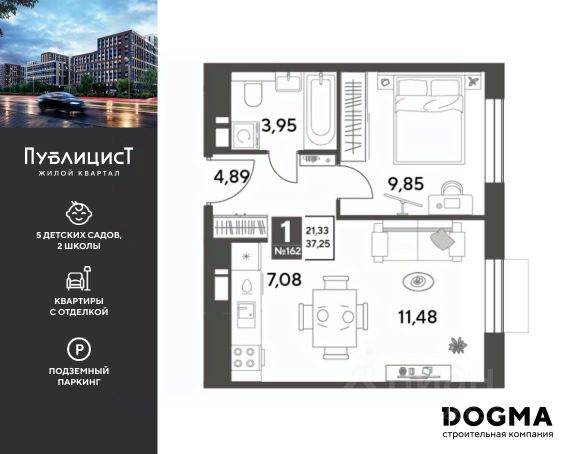 Продаётся 1-комнатная квартира в строящемся доме (Корпус 4), срок сдачи: IV-кв. 2026, общей площадью 44.5 кв.м., на 17 этаже. Расположение, транспортная доступность