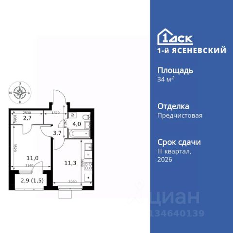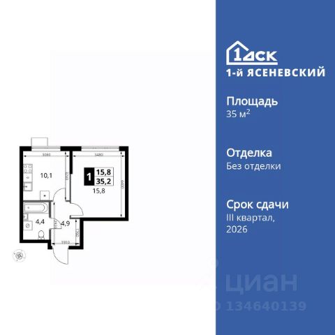 Прямая продажа от застройщика! Жилой Комплекс класса Комфорт Плюс. Продаётся 1-к квартира номер 788 общей площадью 34.2 кв.м. на 18-м этаже 18 этажного здания. Предчистовая отделка. Цена с учётом скидки. Особенности квартиры: - Квартиры рядом с метро - м. Корниловская 9 мин пешком - 63 га лесопарка за окнами - Школа c ИТ-кластером и бассейном. 2 детских сада - Организуем показ в удобное для вас время! - Мастер-зона с гардеробной. Просторное место для отдыха и удобного хранения вещей. - Линейная планировка - максимальная функциональность и удобство. - Увеличенная высота потолков - ощущение простора и легкости. - Можно оборудовать рабочее место - комфорт для работы и учёбы. - Линейная кухня - функциональность и практичность в одном решении. - Гардеробная - удобство для хранения и организации вещей. - Ниша под шкаф - компактное и удобное место для вещей. - Лоджия - уютное место для отдыха и тишины. Квартира с предчистовой отделкой. Вам не придется заниматься черновыми и трудоёмкими работы, а чистовую отделку и дизайн - сделайте на свой вкус. Информация о комплексе: ЖК "1-й Ясеневский": преимущества городской инфраструктуры и природы. Пешая доступность к метро, школе с бассейном и ИТ-кластеру, а также 63 га Троицкого лесопарка под окнами. Закрытая территория с бульварами, велодорожками, кафе и дворами без машин. Фруктовые деревья и городские сады создают уникальную атмосферу. Всего в 1 км от МКАД - идеальный баланс для современной жизни. Транспортная доступность: До метро "Корниловская" - 12 минут пешком До метро "Тютчевская" - 25 минут пешком До метро "Теплый стан" - 10 минут на транспорте До метро "Ольховая" - 30 минут на общественном транспорте Личный автотранспорт: Выезд на Калужское шоссе - 500 м МКАД - 1 км Внутренняя инфраструктура: ЖК "1-й Ясеневский" - идеальное место для семей с детьми. Рядом Троицкий лесопарк для прогулок, а во дворах - современные детские площадки, разработанные с участием психологов. В шаговой доступности два детских сада и школа на 1100 мест с ИТ-кластером, бассейном и классами робототехники. Всё для счастливого детства и успешного будущего. Квартира с предчистовой отделкой - ваш дизайн без черновых работ