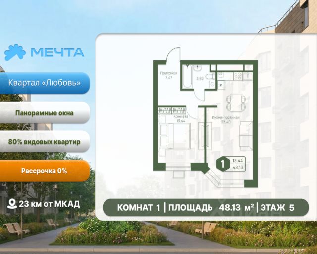 Продажа однокомнатных квартир на последнем этаже рядом с метро Лобня