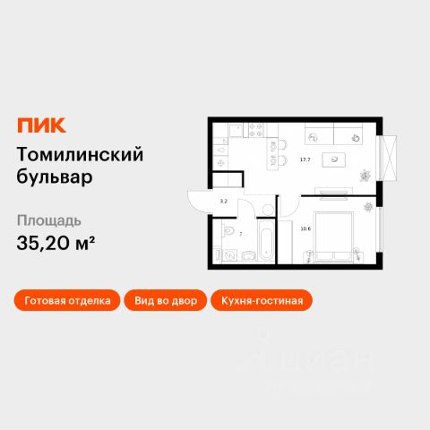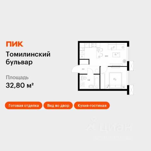 Продаётся 1-комн. квартира площадью 42,2 кв.м на 25 этаже 25 этажного дома (Корпус 5-8, Секция 2) проекта ПИК Томилинский бульвар. Светлый просторный подъезд на уровне земли, функциональная планировка, большие окна, c отделкой. Жилой квартал "Томилинский бульвар" возводится рядом с Кузьминским парком в Котельниках. В 20 минутах пешком метро "Котельники", а на автомобиле 4 минуты до Новорязанского шоссе и 6 минут - до МКАД. В жилом квартале 11 корпусов. Высота домов - 25 этажей. В "Томилинском бульваре" будут три собственных детских сада, поликлиника, паркинги для жителей и гостей квартала, парки с Вайфай во дворе каждого дома - с местами для спокойного отдыха, спортивными и детскими площадками. На первых этажах откроются кафе, магазины и другие сервисы, важные для комфортной жизни. В районе, где строится "Томилинский бульвар", всё рядом: школы, детские сады, магазины, торговые центры - например, до "МЕГА Белая Дача" можно доехать за 15 минут. Ещё здесь много мест для прогулок и отдыха на природе, совсем рядом благоустроенный сквер "Патриот". В 13 минутах пешком находится парк "Кузьминки", а в 12 минутах на автомобиле - Люберецкие карьеры, где можно ловить рыбу, загорать и заниматься водными видами спорта в экстрим-парке. Артикул 578066 (Застройщик АО "Яркий мир")