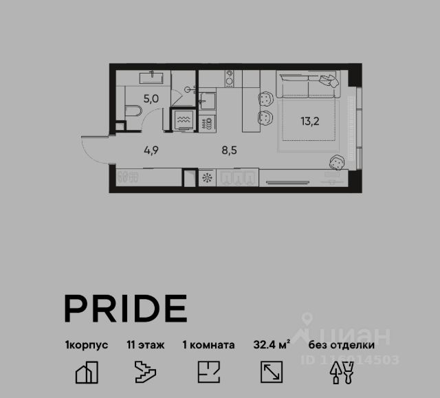 В премиальном жилом квартале Прайд продается 1-комнатная квартира в 1 корпусе, на 11 этаже, в секции 4. Её общая площадь составляет 32.4 м². Ключи в 2026 году. Удобная локация: Жилой квартал расположен в 15 минутах от Цветного бульвара в историческом районе Марьина Роща. До любой точки города быстро и удобно добраться на авто — проект находится всего в 3 минутах от ТТК. Яркая архитектура с переменной высотностью от 7 до 22 этажей от именитого бюро APEX формирует запоминающийся облик проекта. Развитая инфраструктура: Территория квартала делится на несколько отдельных частей: открытый просторный бульвар 3500 м² и два внутренних камерных двора. Внутри предусмотрены площадки для спорта, места для игр и тихие пространства для отдыха и неторопливого общения. Коммерческие и торговые помещения спроектированы на уровне первых этажей: супермаркеты, магазины, рестораны и кофейни, барбершоп, спа-салон и другие сервисные точки. Образовательный центр со школой на 257 учеников и детским садом на 112 мест также появится на собственной территории квартала. Таким образом внутренняя инфраструктура Прайд обеспечит все базовые потребности будущих жителей. Благоустроенная территория: Ландшафтный дизайн с многоуровневым и замысловатым озеленением будет радовать жителей на протяжении всех сезонов — богатая флора дворов включает в себя несколько десятков видов растений. Лобби как в лучших отелях мира: На первых этажах резидентов и гостей встретят лобби с авторским дизайном от Sundukovy Sisters, бюро знаменито своими работами для премиальных отелей и ресторанов по всей планете. Надежный застройщик: Девелопер PIONEER — компания с 24-летней историей. В портфеле — 40 проектов жилой, коммерческой, социальной и многофункциональной недвижимости в Москве и Санкт-Петербурге. С 2001 года было реализовано 2,9 млн м². В настоящее время 1,6 млн м² находятся в стадии проектирования и строительства. Среди новых знаковых проектов девелопера — премиальные жилые кварталы и деловые объекты класса А. Квартира