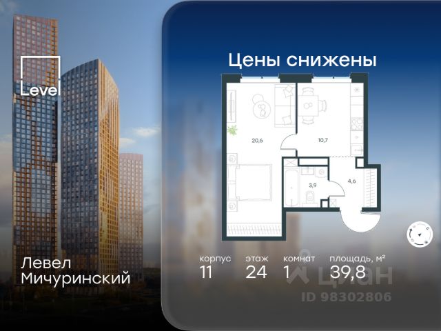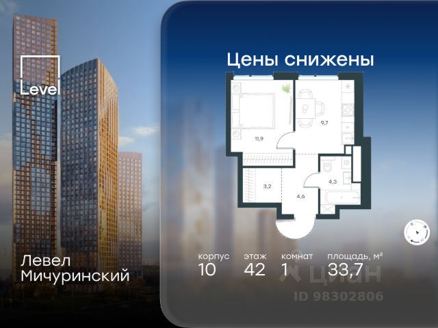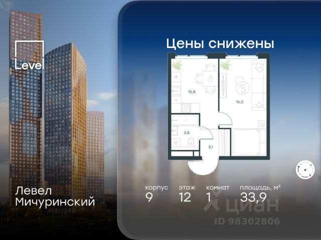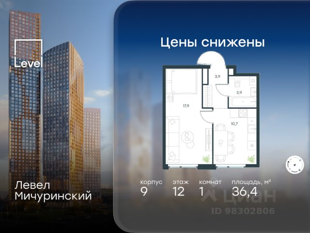 Скидка 35% на все квартиры в жилом комплексе Левел Мичуринский, этапы 3 и 4 (корпуса 7-13). Цена указана с учётом скидки при 100%-й оплате, несубсидированной ипотеке, рассрочке (кроме программы "Рассрочка 0%"). В жилом квартале, расположенном на границе с природным заказником "Долина реки Очаковки", продаётся 1-комнатная квартира площадью 36.40 кв.м без отделки. Квартира расположена на 12 этаже 12-этажного корпуса 9 в жилом комплексе бизнес-класса Левел Мичуринский (компания Level Group/Левел групп). Отличная транспортная доступность: - от 10 мин. пешком до станции метро "Мичуринский проспект" - 15 мин. пешком до станции метро "Аминьевская" - 7 мин. на авто до МКАД - 10 мин. на авто до ТТК - 15 мин. на авто до Москва-Сити Продуманный архитектурный проект: - Выразительная архитектура от известных бюро: корпуса 1-6 - бюро СПИЧ, корпуса 7-13 - архитектурное бюро Анатолия Борисова; - Из окон открываются живописные виды на парки, Москва-Сити и МГУ; - Высокие потолки до 6,35 м; - Стильные лобби с окнами в пол и высокими потолками до 4,7 м; - С каждого этажа дома на лифте можно спуститься в подземный отапливаемый паркинг. Расположение: Жилой комплекс Левел Мичуринский строится в одном из самых зелёных районов Москвы - Очаково-Матвеевское. Этот уголок столицы идеален для поддержания здорового образа жизни. В шаговой доступности от проекта находятся заказник "Долина реки Очаковки" - 1 мин. пешком и Очаковский парк - 7 мин. пешком. На велосипеде можно добраться до таких парков, как "Событие", парк Олимпийской деревни, парк 50-летия Октября и парк Школьников. В 15 минутах езды на авто расположено более 30 детских садов (из них 14 в пешей доступности), 32 школы (из них 13 в пешей доступности) и 14 вузов. Также в ближайшем окружении - более 25 медицинских учреждений, 11 спортивных клубов и 22 продуктовых супермаркета. Внутренняя инфраструктура: На территории жилого комплекса строится три детских сада и школа. На первых этажах домов откроется супермаркет, фитнес-центр, ресторан, кафе и другие сервисы. Подземные этажи займут паркинги: трёхуровневые - в этапах 1 и 2, одноуровневый - в этапах 3 и 4. Преимущества проекта: - 4,5 га благоустроенной территории с видовым мостом, уличным кинотеатром, зонами для тихого отдыха, работы, уличных тренировок, площадки для петанка, футбола, настольного тенниса и пляжного волейбола. - Дизайнерские лобби с панорамным видом на двор, мойками для лап животных и комфортными зонами ожидания. - Безопасность жителей: круглосуточное видеонаблюдение всех зон общего пользования (лобби, лифты, паркинги, детские площадки), система контроля доступа, управление видеодомофоном через мобильное приложение, единый ключ доступа на территорию жилого комплекса. - Технологии и комфорт: высокоскоростной вайфай в лобби и на придомовой территории, автоматическая система контроля и учёта ресурсов, абонентская связь с консьержем, распознавание номеров автомобилей при въезде в паркинг и выезде из не