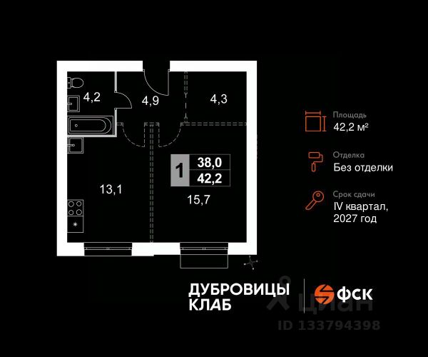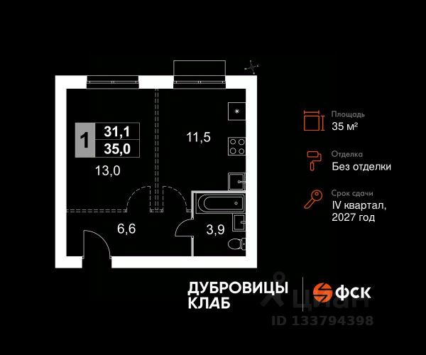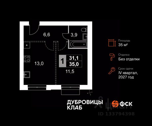 Прямая продажа от застройщика! Загородный жилой комплекс комфорт-класса. Продаётся 1-к квартира 140 общей площадью 35.0 кв.м на 4-м этаже 4 этажного дома. Без отделки. Расположение комплекса: "Дубровицы Клаб" — это современный малоэтажный комплекс комфорт-класса, который сочетает в себе атмосферу уюта загородной жизни и все преимущества развитой городской инфраструктуры. В проекте представлено два формата жилья - комфортные таунхаусы и эргономичные квартиры. Территория "Дубровицы Клаб" приватные зелёные дворы без автомобилей, школа, детский сад и спорткомплекс с бассейном. Транспортная доступность: - 20 минут на машине до станции МЦД "Подольск" - 50 минут на машине до МКАД - 50 минут на машине до ст.метро Улица Скобелевская Внутренняя инфраструктура: "Дубровицы Клаб" объединяет динамику городской жизни и спокойствие природы, создавая пространство, где работа и отдых, движение и умиротворение сливаются в единый поток — в жизнь, наполненную балансом и вдохновением. Место силы — это философия жизни, воплощённая в благоустроенной среде загородного комплекса "Дубровицы Клаб". Здесь всё создано для восстановления энергии и гармонии: прогулочные маршруты, зоны отдыха, воркаут-площадки и природные пространства, плавно переходящие в уют жилых кварталов. Для удобства жителей на территории комплекса открыта торговая галерея, где собрано всё необходимое: супермаркет, аптека, зоомагазин, винный бутик, лавка деликатесов, пекарня, химчистка и дом быта.
