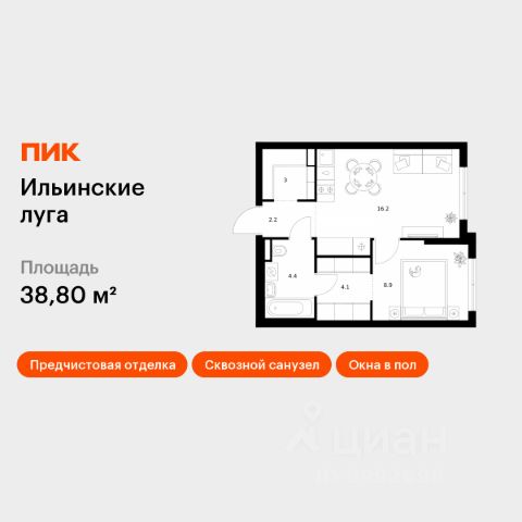 Продажа однокомнатных квартир на последнем этаже рядом с метро Пенягино