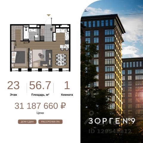 "Зорге 9" — готовые апартаменты бизнес-класса на Ходынке. 10 минут до Москва-Сити. Архитектура: 3 современных корпуса с фасадами в стиле архитектуры Нью-Йорка и с сервисами премиальных отелей, высотой до 23 этажа. Строгие линии, панорамные окна создают ощущение неподдельной роскоши и комфортной жизни в сердце мегаполиса. Проект награжден авторитетной премией European Property Awards. Резиденции: Свободная планировка, небольшая глубина этажа, огромные панорамные окна в пол до 3,6 м и высота потолков до от 3,3 до 4,3 м позволяют реализовать самые смелые концептуальные идеи и создать идеальный интерьер с учетом всех пожеланий. Вдохновляющие виды на город украсят ваш апартамент лучше любой картины. Есть возможность приобретения дизайн-проекта и полной меблировки апартаментов от партнеров девелопера. Расположение: 3 мин. пешком до парка Березовая роща 10 мин. пешком до Ходынского поля 10 мин. до ТЦ Авиапарк 30 минут до Шереметьево 10 мин до Москва-Сити или 1 станция до Москва-Сити 5 минут до ТТК 4 станции метро в шаговой доступности: 6 мин м. Полежаевская (фиолетовая ветка) 7 мин МЦК Зорге (МЦК) 7 мин м. Хорошевская (голубая ветка) 10 мин МЦК Хорошёво (МЦК) Благоустройство: Собственный парк 2 га с амфитеатром и поющими фонтанами. В парке высажено 136 деревьев и более 11 000 кустов и мелких растений из немецких питомников. Площадка для йоги и воркаут-зона со спортивными площадками. Теннисные столы и детский плейхаб Две башни Авторское гранд-лобби В лобби предусмотрена лаундж-зона, чайная с камином, комната для хранения велосипедов и колясок. Доступ по системе FACE ID. В отделке лобби и лифтовых холлов использован декоративный камень итальянского бренда Atlas Concorde Пентхаусы На верхнем уровне комплекса расположены роскошные просторные пентхаусы с высотой потолка до 4,2 метра и панорамными окнами до 3,6 метров, открывающими великолепные виды на столицу. Пентхаусы с выходами на собственные приватные террасы на кровле, площадью от 150 кв. м являются жильем high-уровня, демонстрирующим высокий статус владельца.