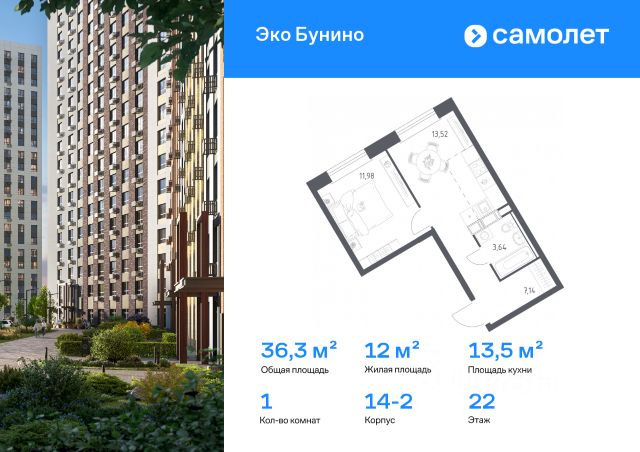 Продажа однокомнатных квартир на последнем этаже рядом с метро Потапово