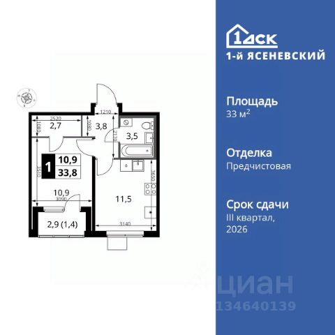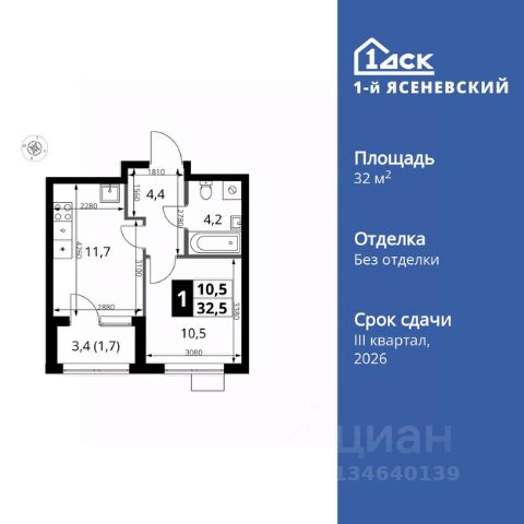 Прямая продажа от застройщика! Жилой Комплекс класса Комфорт Плюс. Продаётся 1-к квартира номер 463 общей площадью 32.5 кв.м. на 18-м этаже 18 этажного здания. Без отделки. Особенности квартиры: - Квартиры рядом с метро - м. Корниловская 9 мин пешком - 63 га лесопарка за окнами - Школа c it-кластером и бассейном. 2 детских сада - Линейная планировка - максимальная функциональность и удобство. - Гибкая планировка - создайте пространство по своему вкусу. - Увеличенная высота потолков - ощущение простора и легкости. - Ниша под шкаф - компактное и удобное место для вещей. - Лоджия - уютное место для отдыха и тишины. Информация о комплексе: В жилом комплексе комфорт-плюс класса "1-го Ясеневского" доступны преимущества двух стилей жизни. Ведь в пешей доступности метро, школа с 25-метровым бассейном и IT-кластером и при этом целых 63 га благоустроенного Троицкого лесопарка под окнами, где так приятно дышать свежим воздухом и слушать пение птиц. Собственная закрытая территория "1-го Ясеневского" представляет собой уютный оазис. Здесь и зеленый освещенный бульвар для прогулок, система велодорожек, маленькая городская площадь, кафе, пекарни и кофе поинты. А еще дворы без машин и многоэтажная парковка. Изюминка территории - фруктовые деревья во дворах и городские сады. "1-й Ясеневский" - всего в 1 км от МКАД, на территории новой Москвы. Жилой комплекс, где есть все необходимое для современного человека. Транспортная доступность: До метро "Корниловская" - 12 минут пешком До метро "Тютчевская" - 25 минут пешком До метро "Теплый стан" - 10 минут на транспорте До метро "Ольховая" - 30 минут на общественном транспорте Личный автотранспорт: Выезд на Калужское шоссе - 500 м МКАД - 1 км Внутренняя инфраструктура: ЖК "1-й Ясеневский" можно назвать идеальным местом для жизни семьи с детьми. Здесь буквально за домом находится Троицкий лесопарк - излюбленное место прогулок молодых родителей. А во внутренних дворах под детские площадки выделены специальные зоны. Они оборудованы всем, что нужно для счастливого детства: современными и максимально безопасными качелями, песочницами и лазалками. Оборудование и игровые сценарии на детских площадках спроектированы вместе с командой детских психологов для правильного развития ребенка и для повышения их интереса. Также рядом с домом два детских садика, один из которых уже построен и школа на 1100 мест. Школу по праву можно назвать образцовым учебным заведением. В ней закладываются основы успешного будущего. Здесь есть класс робототехники, IT-кластер, 25-метровый бассейн и прекрасно оборудованные спортзалы.