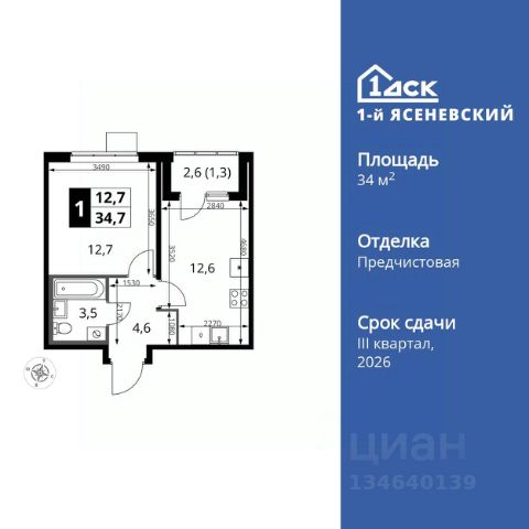 УСПЕЙ ПО СЕМЕЙНОЙ ИПОТЕКЕ БЕЗ НАЦЕНКИ! Квартиры в Москве от 45 000 рублей в месяц! Прямая продажа от застройщика! Жилой Комплекс класса Комфорт Плюс. Продаётся 1-к квартира номер 334 общей площадью 34.7 кв.м. на 18-м этаже 18 этажного здания. Отделка Whitebox. Особенности квартиры: - Квартиры рядом с метро - м. Корниловская 9 мин пешком - 63 га лесопарка за окнами - Школа c it-кластером и бассейном. 2 детских сада - Линейная планировка - максимальная функциональность и удобство. - Увеличенная высота потолков - ощущение простора и легкости. - Ниша под шкаф - компактное и удобное место для вещей. - Лоджия - уютное место для отдыха и тишины. Квартира с предчистовой отделкой (White box). Вам не придется заниматься черновыми и трудоёмкими работы, а чистовую отделку и дизайн - сделайте на свой вкус. Информация о комплексе: В жилом комплексе комфорт-плюс класса "1-го Ясеневского" доступны преимущества двух стилей жизни. Ведь в пешей доступности метро, школа с 25-метровым бассейном и IT-кластером и при этом целых 63 га благоустроенного Троицкого лесопарка под окнами, где так приятно дышать свежим воздухом и слушать пение птиц. Собственная закрытая территория "1-го Ясеневского" представляет собой уютный оазис. Здесь и зеленый освещенный бульвар для прогулок, система велодорожек, маленькая городская площадь, кафе, пекарни и кофе поинты. А еще дворы без машин и многоэтажная парковка. Изюминка территории - фруктовые деревья во дворах и городские сады. "1-й Ясеневский" - всего в 1 км от МКАД, на территории новой Москвы. Жилой комплекс, где есть все необходимое для современного человека. Транспортная доступность: До метро "Корниловская" - 12 минут пешком До метро "Тютчевская" - 25 минут пешком До метро "Теплый стан" - 10 минут на транспорте До метро "Ольховая" - 30 минут на общественном транспорте Личный автотранспорт: Выезд на Калужское шоссе - 500 м МКАД - 1 км Внутренняя инфраструктура: ЖК "1-й Ясеневский" можно назвать идеальным местом для жизни семьи с детьми. Здесь буквально за домом находится Троицкий лесопарк - излюбленное место прогулок молодых родителей. А во внутренних дворах под детские площадки выделены специальные зоны. Они оборудованы всем, что нужно для счастливого детства: современными и максимально безопасными качелями, песочницами и лазалками. Оборудование и игровые сценарии на детских площадках спроектированы вместе с командой детских психологов для правильного развития ребенка и для повышения их интереса. Также рядом с домом два детских садика, один из которых уже построен и школа на 1100 мест. Школу по праву можно назвать образцовым учебным заведением. В ней закладываются основы успешного будущего. Здесь есть класс робототехники, IT-кластер, 25-метровый бассейн и прекрасно оборудованные спортзалы.