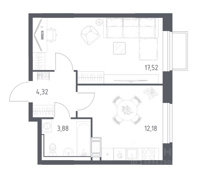 В продаже 1-комнатная квартира в корпусе 3.2 ЖК 'Егорово Парк'. Квартира располагается на 12 этаже, общая площадь 38.38 м2.