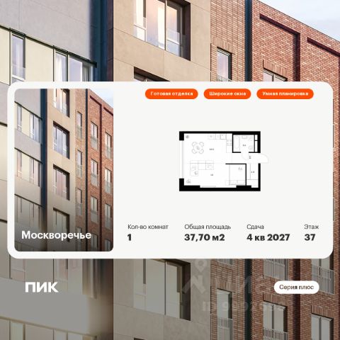 Продается 1-комнатная квартира общей площадью 37.3 кв. метров на 52 этаже жилого комплекса ВЕЙВ. Комплекс располагается на юге Москвы в районе Москворечье-Сабурово. В пешей доступности расположены станция МЦД "Москворечье" и станция метро "Борисово". Для автомобилистов есть удобное сообщение с Каширским шоссе. Первая очередь строительства носит название "Оттенки синего" и состоит из четырех башен, высотой от 14 до 52 этажей: Azure, Bondi, Indigo, Sapphire. Автором первой очереди является бюро "СПИЧ". Ключевым преимуществом ВЕЙВ является благоустроенная набережная со смотровой площадкой, беговыми и велодорожками, детскими и спортивными. В центре квартала появится зеленый пешеходный бульвар с детскими и спортивными площадками, а также зоной тихого отдыха. Вокруг жилого квартала сосредоточены более 2000 га зеленых пространств: парк "Борисовские пруды", Братеевский каскадный парк, парк 850-летия г. Москвы, музеи-заповедники "Царицыно" и "Коломенское". Особое внимание в ВЕЙВ уделено интерьерам лобби, выполненным в современном стиле с яркими акцентами. Стильное пространство разделено на несколько зон: ресепшен, зона ожидания с Wi-Fi и мягкими креслами, колясочная и лаконичный лифтовый холл. Для автомобилистов предусмотрен двухуровневый подземный паркинг с видеонаблюдением, усилителем сотовой связи и системой распознавания номеров.
