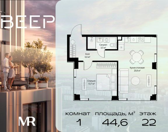 Прямая продажа от застройщика. В ЖК Сет продается 1-комнатная квартира площадью 33.82 м², расположенная в корпусе Б, на 59 этаже 59 этажного дома. Сет имеет стратегически выгодное расположение в ЗАО, в районе с большой историей и блестящим будущим: между природной зоной долины реки Сетунь и Кутузовским проспектом. В рамках возведения первой очереди предусмотрено три корпуса высотой 18, 45 и 59 этажей. На верхних этажах спроектированы общедоступные смотровые площадки с панорамным обзором на центр столицы. Преимущества проекта: • Функциональные планировочные решения • Контроль проникновения через входную дверь • Система управления освещением и температурой в квартире • Система защиты от протечек с функцией перекрытия воды • Вход в подъезд по биометрическим считывателям Face ID • Скоростные лифты • Двухуровневый подземный охраняемый паркинг на 495 машино-мест Застройка Сет включает в себя не только жилые корпуса, но и инфраструктурные объекты. Все необходимое для повседневного комфорта будет расположено в шаговой доступности: • Фитнес-Клуб с бассейном • Ведущая городская школа, детский сад и школа искусств • Центр культуры и досуга • Медицинский центр • Кафе и рестораны Расположение комплекса: Пешком: • Метро "Давыдково" - 17 минут • Парк "Долина реки Сетунь" - 3 минуты • Открытие новых станций метро в шаговой доступности в будущем Инфраструктура: Разнообразить свой день резиденты Веер смогут также проводя больше времени на свежем воздухе. Двор разделен на 4 зоны разных эмоций и действий, которые пересечены и соединены веерными прогулочными маршрутами: • Спортивная площадка устроена в глубине "Кленовой рощи" • В "Чайном домике" будет создан навес с утеплением для отдыха в любую погоду • Площадки для детей воплотятся в "Волшебный лес" с цветами, зеркалами и световым дизайном • "Центральная площадь" устроена у водного оазиса живописного пруда. На машине: • "Москва-Сити" - 15 минут • Садовое кольцо - 20 минут • ТЦ "Океания" - 8 минут • ТЦ "Времена года" - 13 минут • Сколково - 12 минут • Гребной канал - 17 минут Компания MR предлагает своим клиентам специальные условия приобретения квартир в рамках программ ипотечного кредитования от банков-партнеров.