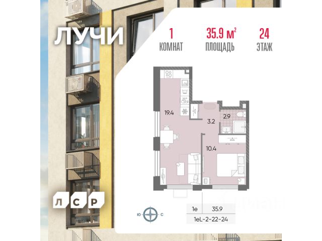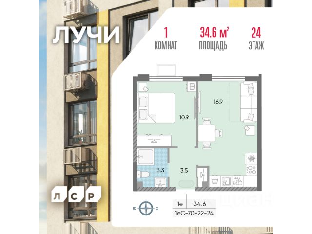 Арт. 113040631 Квартира бизнес-класса с дизайнерским ремонтом в уникальном ЖК "Homecity" у м. Румянцево.