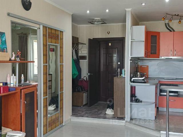 Удобная комната для кухни, с выводами под воду и посудомойку, под электр.варочную панель и прочее. Тонированная стильная выдвижная перегородка для зоны с кроватью (или гардеробной) в комнате. Качественная входная дверь.