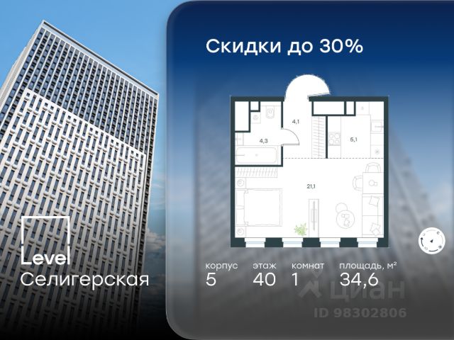 Прямая продажа от застройщика. Продаётся 1-комнатная квартира общей площадью 41.10 м² без отделки в ЖК "Селигер Сити" на 15-м этаже корпуса Ломоносов. Корпуса четвертой очереди ЖК "Селигер сити" названы в честь трех великих представителей науки и архитектуры, новаторское видение которых слишком смелое для своего времени нашло воплощение в уникальных домах жилого комплекса. Клубный 15-этажный корпус Ломоносов расположен во дворе 4 очереди. Фасад корпуса выполнен из темного кирпича с контрастным первым этажом. Квартиры верхних этажей имеют панорамные окна и балконы с декоративным ограждением. Часть квартир на втором этаже имеют открытые террасы. На первом этаже дизайнерские интерьеры лобби выполненные по проекту бюро Вlank Architects. На жилых этажах не более 5 квартир. Преимущества проекта: - 2 минуты пешком от метро "Селигерская" - Архитектурное решение от голландского бюро MLA + - Одна из самых больших придомовых территорий в Москве - Огороженная охраняемая территория, круглосуточное видеонаблюдение - Европейский подход к благоустройству от бюро Wowhaus: появится парадный бульвар, аллея с фонтаном и арт-объектом, что дополнит уже сформированное благоустройство: детские площадки для разных возрастов, площадки для воркаута, дорожки для бега и пеших прогулок, места для отдыха - Два детских сада, школа начальных классов и центр доп.образования - Искусственный пруд на территории комплекса с благоустроенной набережной и мостом - Продуманная концепция инфраструктуры: уютные кафе и рестораны, супермаркет, магазин фермерских продуктов, бытовые службы, салон красоты, детские сады - Ультрасовременные инженерные решения - Подземный паркинг с зарядными станциями для электромобилей, постами подкачки шин и келлерами - Лобби по индивидуальному дизайн проекту от европейского бюро Вlank Architects: лаунж-зоны, ресепшен, колясочная, помещение для мытья лап животным после прогулки - Надежный девелопер с опытом премиальных проектов MR Расположение комплекса: - 2 минуты от станции метро "Селигерская" - 7 минут на машине до станции метро "Окружная" - Предусмотрен удобный выезд в сторону ТТК (всего 9 км или 15 минут без пробок) - МКАД в 10 минутах на машине Компания MR предлагает своим клиентам специальные условия приобретения квартир в рамках программ ипотечного кредитования от банков-партнеров.