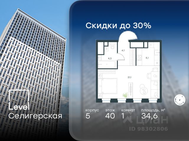 Прямая продажа от застройщика. Продаётся 1-комнатная квартира общей площадью 41.10 м² без отделки в ЖК "Селигер Сити" на 15-м этаже корпуса Ломоносов. Корпуса четвертой очереди ЖК "Селигер сити" названы в честь трех великих представителей науки и архитектуры, новаторское видение которых слишком смелое для своего времени нашло воплощение в уникальных домах жилого комплекса. Клубный 15-этажный корпус Ломоносов расположен во дворе 4 очереди. Фасад корпуса выполнен из темного кирпича с контрастным первым этажом. Квартиры верхних этажей имеют панорамные окна и балконы с декоративным ограждением. Часть квартир на втором этаже имеют открытые террасы. На первом этаже дизайнерские интерьеры лобби выполненные по проекту бюро Вlank Architects. На жилых этажах не более 5 квартир. Преимущества проекта: - 2 минуты пешком от метро "Селигерская" - Архитектурное решение от голландского бюро MLA + - Одна из самых больших придомовых территорий в Москве - Огороженная охраняемая территория, круглосуточное видеонаблюдение - Европейский подход к благоустройству от бюро Wowhaus: появится парадный бульвар, аллея с фонтаном и арт-объектом, что дополнит уже сформированное благоустройство: детские площадки для разных возрастов, площадки для воркаута, дорожки для бега и пеших прогулок, места для отдыха - Два детских сада, школа начальных классов и центр доп.образования - Искусственный пруд на территории комплекса с благоустроенной набережной и мостом - Продуманная концепция инфраструктуры: уютные кафе и рестораны, супермаркет, магазин фермерских продуктов, бытовые службы, салон красоты, детские сады - Ультрасовременные инженерные решения - Подземный паркинг с зарядными станциями для электромобилей, постами подкачки шин и келлерами - Лобби по индивидуальному дизайн проекту от европейского бюро Вlank Architects: лаунж-зоны, ресепшен, колясочная, помещение для мытья лап животным после прогулки - Надежный девелопер с опытом премиальных проектов MR Расположение комплекса: - 2 минуты от станции метро "Селигерская" - 7 минут на машине до станции метро "Окружная" - Предусмотрен удобный выезд в сторону ТТК (всего 9 км или 15 минут без пробок) - МКАД в 10 минутах на машине Компания MR предлагает своим клиентам специальные условия приобретения квартир в рамках программ ипотечного кредитования от банков-партнеров.