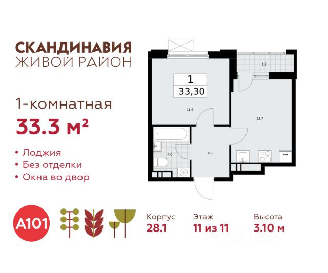Продается однокомнатная квартира 211 в новостройке Жилой район "Скандинавия" по адресу Москва, ТиНАО, Новомосковский АО, Сосенское С/П, Коммунарка пос., жилой комплекс Скандинавия, 28.1, район Коммунарка, Новомосковский административный округ, Москва. Общая площадь квартиры - 33.30 кв. м., этаж 11 из 11, секция 3. Тип проекта, по которому построен дом - монолит, компания-застройщик - ООО "А101". Стоимость квартиры - 18150165 Р. ПРЕДЛОЖЕНИЯ ОТ ЗАСТРОЙЩИКА В ФЕВРАЛЕ 2026: Скидки до 10% на все квартиры. Только в офисах продаж до 28 февраля. Ипотека от 13,9 % для всех! На весь срок. "Семейная ипотека" вернулась. Ставка от 3,5 % на весь срок! Без удорожания! Выгодное ипотечное комбо: Ипотека от 2200 р./мес. и от 6 % после рождения ребёнка! Ипотека для всех "Держи пять!" - ставка 5 % на 2 года! *более подробную информацию по скидкам и акциям уточняйте в отделе продаж ЖК "Скандинавия" на границе Бутовского лесопарка (1610 га) - это баланс качественного жилья и сервисов, зелёных пространств для активного и созерцательного отдыха. Выразительная архитектура и цветовая гамма монолитных корпусов комфорт- и бизнес-класса (8-17 этажей) созвучны скандинавским мотивам, органично интегрированы в великолепный природный контекст. Огороженные дворы свободны от машин, в них продуманы места для отдыха и работы на свежем воздухе, озеленение, детские и спортивные площадки. Для прогулок, встреч и районных праздников - площадь Туве Янссон с "сухим" фонтаном, вековыми дубами и единственным в мире памятником писательнице; пешеходный променад 2 км; 3 крупных природных ручья; более 15 км велосипедных и прогулочных дорожек с арт-объектами. Инфраструктура района включает современные школы и детские сады, центр впечатлений, фитнес-клубы, развивающие и творческие центры, магазины, кафе, салоны красоты. На подземных этажах - паркинги и кладовые. Преимущества "Скандинавии": - ст. метро "Потапово" - 100 м от ближайших домов (открыта!) - удобные выезды на трассу Солнцево - Бутово - Варшавское шоссе и ул. Бачуринская - свои школы и детские сады - инфраструктура на первых этажах и рядом с домом - лесопарк, природные водоёмы, прогулочные маршруты