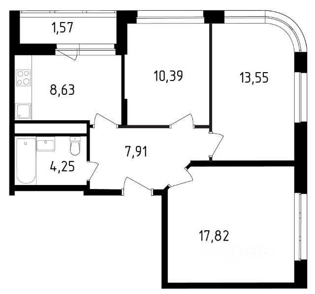 Продаётся 1-комнатная квартира в сданном доме (Семёна Гордого, 12), срок сдачи: IV-кв. 2018, общей площадью 46.3 кв.м., на 2 этаже. Расположение, транспортная доступность