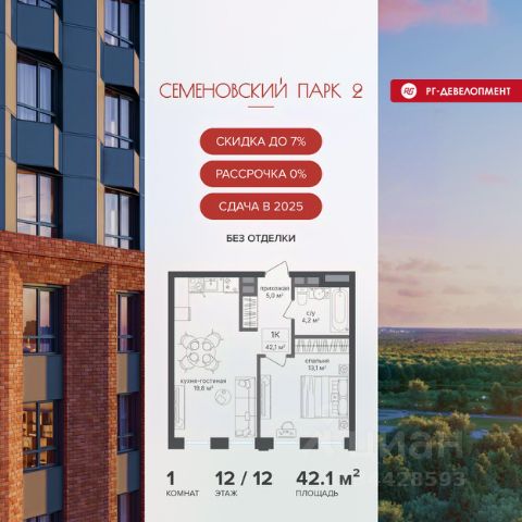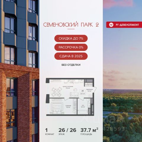 Ипотека для каждого! Полная стоимость кредита от 11,578% до 22,490%. Ставка от 0,11% в АО "Альфа-Банк" фиксируется на 1 год с даты заключения кредитного договора, далее полная стоимость кредита от 25,819% до 28,767% ставка 21,59% до окончания срока кредитования. Первоначальный взнос — от 20% от стоимости квартиры. Срок кредитования — от 3 до 30 лет. Ипотека на весь срок! Полная стоимость кредита от 23,396% до 26,058% со ставкой 14,5%! Первоначальный взнос —от 20,01% от стоимости квартиры. Срок кредитования — от 3 до 30 лет. АО "Банк ДОМ.РФ" универсальная лицензия Банка России 2312 от 19.12.2018. Скидка 7% при покупке квартиры! Цена указана с учетом максимального размера скидки. Продается 1-к квартира 44,6 кв.м. в ЖК "Семеновский парк 2" на 26-м этаже 26 этажного дома. Компания "РГ-Девелопмент" предоставляет скидки на квартиры в жилом комплексе. Акция действительна с 12.09.24 г. до 31.10.25г. включительно. Чтобы воспользоваться предложением, необходимо подписать договор на приобретение недвижимости до 31.10.25г., включительно. Скидка 5% + Рассрочка 0% При приобретении дольщиком квартиры с использованием способа оплаты "Рассрочка 0%", у покупателя также есть право воспользоваться скидкой в размере 5% от полной стоимости квартиры. Условия программы рассрочки: - Первый платеж составляет 20% от стоимости объекта и вносится при заключении ДДУ. - Оставшаяся сумма выплачивается за месяц до планового срока ввода ЖК в эксплуатацию, то есть не позднее 30.11.2025. Прямая продажа от застройщика! Квартиры без отделки. Срок сдачи корпуса - 4 кв. 2025 г. ЖК "Семеновский парк 2" - это идеальное место для того, чтобы стать вашим домом. Проект расположен в исторической части Москвы вблизи Измайловского лесопарка, в 1 км от ЦАО. 4 станции метро отделяют вас от Красной площади и 15 минут на автомобиле - от Садового кольца.