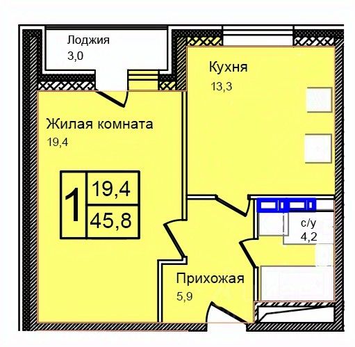 Продаётся 1-комнатная квартира в строящемся доме (Корпус 5), срок сдачи: IV-кв. 2027, общей площадью 45.8 кв.м., на 12 этаже.