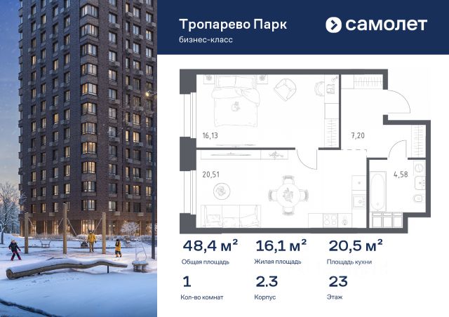 Строим кварталы для жизни с заботой о будущем. Предлагаются 1-комнатные апартаменты бизнес-класса 36,86 кв.м в корпусе 2.2 на 23 этаже, в МФК "Тропарево Парк" Апартаменты с чистовой отделкой. Доступность дополнительных опций уточняйте у застройщика. Прописка не предусмотрена в рамках юридического статуса - апартаменты. Приобрести апартаменты возможно по специальным акциям от застройщика, с текущими условиями акций можно ознакомиться в блоке "Акций". Цена динамическая и может отличаться, уточняйте актуальность у застройщика. "Тропарево Парк" — комплекс апартаментов бизнес-класса рядом с Ленинским проспектом, в Новой Москве. Находится всего в 10 минутах пешком от станции метро "Румянцево". Включает 7 жилых корпусов высотой от 16 до 23 этажей, приватные дворы-сады, обширную зеленую территорию с общественными пространствами. Из части апартаментов открываются виды на Тропаревский лесопарк, расположенный рядом.