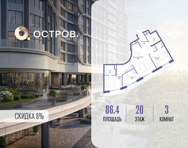 Продаётся однокомнатная квартира от застройщика: общая площадь 50.50 м², жилая 19.90 м², кухня 21.30 м², 21, жилой квартал "Остров 7", корпус 7 (7 квартал) (секция 1). срок сдачи: 4-кв. 2025. , 1 совмещенный санузел. В жилой зоне 2 больших окна на одну сторону, хорошая инсоляция. Позвоните сейчас и забронируйте квартиру! Купите квартиру в доме у прибрежного парка, в квартале ОСТРОВ.7. Это семь корпусов премиум- и бизнес-класса в одном из лучших мест ОСТРОВА - между бульваром и парком, поблизости от реки. Стильные корпуса имеют узнаваемый вид благодаря бионической пластике фасадов, приподнятых над землей. Для жителей предусмотрены детский клуб, фитнес-рум, коворкинг, переговорные, лаунжи. На крышах устроены видовые общественные пространства с зонами для отдыха и спорта. Двор расположен на двух уровнях: нижний ландшафтный парк и верхняя городская терраса. ОСТРОВ.7 - часть жилого комплекса на западе Москвы, в 15 минутах езды от центра. Это настоящий заповедник посреди большого города, в окружении реки и 650 га заповедников. Здесь все необходимое находится по соседству: от детского сада до супермаркета, от фитнес-зала до серфинг-центра. На территории созданы все условия для отдыха и общения: клубная инфраструктура в домах и дворы-парки, набережные и променады, маршруты для спортсменов, детей и возрастных жителей. В нескольких минутах ходьбы расположена станция метро "Терехово" БКЛ. На автомобиле - 10 минут до Москва-Сити и 15 минут до Садового кольца.