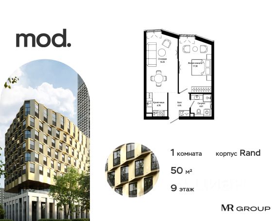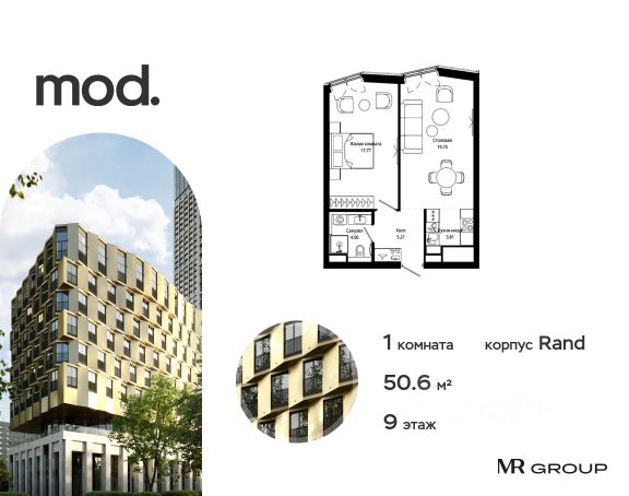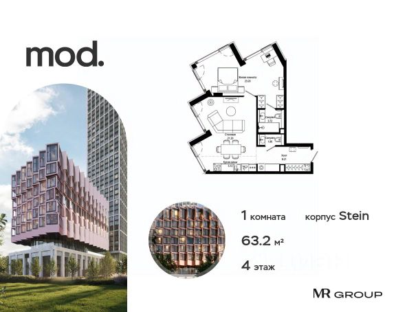 Прямая продажа от застройщика. Продается 1-комнатная квартира общей площадью 41.19 м² с предчистовой отделкой в ЖК премиум-класса Mod на 19-м этаже 44 этажного дома. Mod - жилой комплекс премиум-класса в историческом районе Москвы Марьина Роща. Пятый корпус станет частью единого высотного ансамбля, который поднимается над столицей и очерчивает новый горизонт города. Расположение корпуса Mod.C отличается тем, что виды на юго-запад Москвы не ограничены существующей застройкой. Почти все главные доминанты столицы — как на ладони: от сталинских высоток до небоскрёбов делового центра. Любоваться достопримечательностями будет вдвойне приятнее через панорамные окна. Закрытая территория жилого комплекса, продуманное благоустройство, эксплуатируемые кровли стилобата, образовательный центр с детским садом создают приватное пространство для тихой семейной жизни, а городская площадь с фонтанами, ресторан, супермаркет, коммерческая инфраструктура на первых этажах привносят созвучную с ритмом города динамику. Преимущества проекта: - В шаговой доступности новый деловой кластер Москвы - Выразительная авторская архитектура - Единственные в Москве фасады башен из натурального камня - Панорамное остекление и высота потолков до 4,8 м - Квартиры и апартаменты с отделкой MR Base - Многоуровневое благоустройство с зонированием на закрытой территории - Многофункциональный образовательный детский центр с детским садом - Двухуровневый подземный паркинг Транспортная доступность: - 5 минут пешком до станции метро "Марьина Роща" - 3 минуты до ТТК - 15 минут до Цветного бульвара Компания MR Group предлагает своим клиентам специальные условия приобретения квартир в рамках программ ипотечного кредитования от банков-партнеров.
