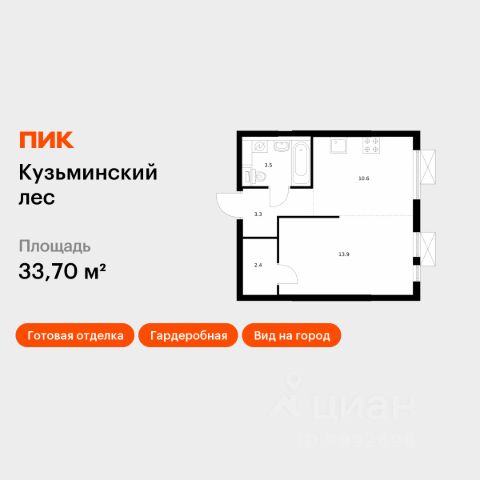 Продаётся 1-комн. квартира площадью 33,8 кв.м на 18 этаже 25 этажного дома (Корпус 10, Секция 1) проекта ПИК Кузьминский лес. Светлый просторный подъезд на уровне земли, функциональная планировка, большие окна, c отделкой. Жилой квартал "Кузьминский лес" находится в Московской области, в городе Котельники. Отсюда за 18 минут можно дойти до метро "Котельники", а за 5 минут — доехать на машине до МКАД. В проекте — жилые дома с уютными дворами, школа, детский сад, подземные и гостевые паркинги. Вокруг — развитый район с детскими садами, школами и поликлиниками. Отдохнуть от городской жизни можно в Кузьминском парке и усадьбе "Белая Дача", которые совсем недалеко от "Кузьминского леса". Артикул 582631 (Застройщик АО "Компания АТОЛ")