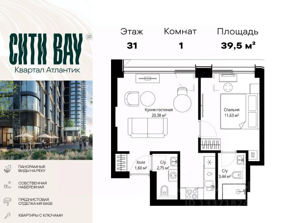 Прямая продажа от застройщика. Продаётся 1-комнатная квартира общей площадью 36.50 м² с предчистовой отделкой в ЖК Сити Бэй на 35-м этаже 53 этажного дома. Концепция жилого комплекса Сити Бэй - настоящий город в городе с отлично развитой инфраструктурой и собственной благоустроенной набережной. На территории жилого комплекса расположено пять кварталов - Атлантик, Пасифик, Индиан, Норс, Клиф. Жилой квартал Сити Бэй отличается оригинальной концепцией и выделяется среди других проектов такими характеристиками как: - Архитектура, - Виды из окон, - Природное окружение, вызывая гордость у жителей и восхищение у прохожих. Вся жизнь района Покровское-Стрешнево строится вокруг водных объектов: - Пойма реки Сходни с уникальной экосистемой, - Речка Химка и Химкинское водохранилище, - Москва-река, - Канал имени Москвы. Кругом вода, и местные с удовольствием этим пользуются. А сразу за рекой - центр водного спорта в Строгино с вейк-парком и яхт-Клубами. Помимо воды, здесь очень много зелени: - Рядом Сходненский ковш памятник природы, естественный амфитеатр глубиной 40 метров; - Парк при усадьбе Братцево с фруктовым садом; - Дубовая роща "Маяк", - Алешкинский лес; - Лесопарк Покровское-Стрешнево с пляжами и бобрами. Главные транспортные артерии района: - Волоколамское шоссе, - Таганско-Краснопресненская линия метро и МЦД-2. Всего за 20 минут можно добраться до центра на машине или метро, а МЦД связывает ЖК Сити Бэй с северными, восточными и юго-восточными районами. Компания MR предлагает своим клиентам специальные условия приобретения квартир в рамках программ ипотечного кредитования от банков-партнеров.