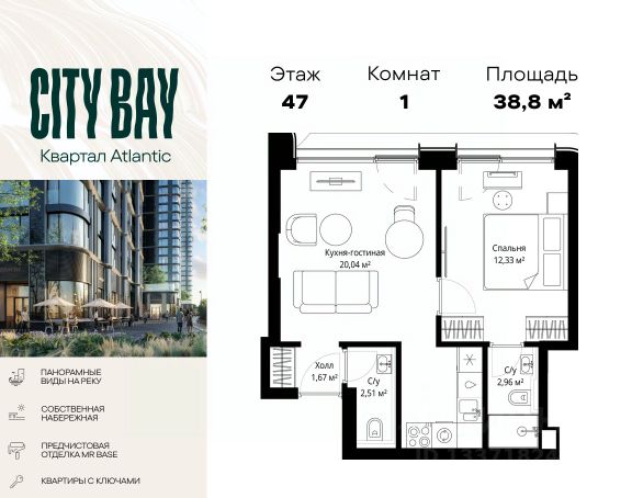 Прямая продажа от застройщика. Продаётся 1-комнатная квартира общей площадью 36.50 м² с предчистовой отделкой в ЖК Сити Бэй на 35-м этаже 53 этажного дома. Концепция жилого комплекса Сити Бэй - настоящий город в городе с отлично развитой инфраструктурой и собственной благоустроенной набережной. На территории жилого комплекса расположено пять кварталов - Atlantic, Pacific, Indian, North, Cliff. Жилой квартал Сити Бэй отличается оригинальной концепцией и выделяется среди других проектов такими характеристиками как: - Архитектура, - Виды из окон, - Природное окружение, вызывая гордость у жителей и восхищение у прохожих. Вся жизнь района Покровское-Стрешнево строится вокруг водных объектов: - Пойма реки Сходни с уникальной экосистемой, - Речка Химка и Химкинское водохранилище, - Москва-река, - Канал имени Москвы. Кругом вода, и местные с удовольствием этим пользуются. А сразу за рекой - центр водного спорта в Строгино с вейк-парком и яхт-клубами. Помимо воды, здесь очень много зелени: - Рядом Сходненский ковш памятник природы, естественный амфитеатр глубиной 40 метров; - Парк при усадьбе Братцево с фруктовым садом; - Дубовая роща "Маяк", - Алешкинский лес; - Лесопарк Покровское-Стрешнево с пляжами и бобрами. Главные транспортные артерии района: - Волоколамское шоссе, - Таганско-Краснопресненская линия метро и МЦД-2. Всего за 20 минут можно добраться до центра на машине или метро, а МЦД связывает ЖК Сити Бэй с северными, восточными и юго-восточными районами. Компания MR предлагает своим клиентам специальные условия приобретения квартир в рамках программ ипотечного кредитования от банков-партнеров.