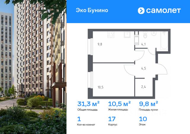 Строим кварталы для жизни с заботой о будущем. Предлагается 1-комнатная квартира комфорт-класса 31,1 кв.м в корпусе 17 на 5 этаже, в ЖК "Эко Бунино" Квартира с предчистовой отделкой. Доступность дополнительных опций уточняйте у застройщика. Приобрести квартиру возможно по специальным акциям от застройщика, с текущими условиями акций можно ознакомиться в блоке "Акций". Цена динамическая и может отличаться, уточняйте актуальность у застройщика. "Эко Бунино" — жилой комплекс в Новой Москве, полностью готовый для жизни. Уже построены школа и детские сады, открыты ледовая арена и магазины. Рядом — 2 станции метро и 3 лесопарка для прогулок. До станции метро "Новомосковская" — 20 минут пешком по экотропе. Во дворах-парках, закрытых от машин, комфортно и безопасно гулять. Здесь высажены уже взрослые деревья, которые создают прохладную тень в жаркий день. Ребенок любого возраста найдет увлекательное занятие в уже готовом плейхабе с большой горкой в виде слона и уникальным игровым оборудованием. Пока дети играют, родители могут прогуляться по бульвару или отдохнуть под навесом из растений. "Эко Бунино" — это 19 монолитных домов переменной этажности. Для облицовки используется навесной вентилируемый фасад и клинкерная плитка, которая имитирует кирпич. Переменная этажность обеспечивает хорошую инсоляцию дворов: в солнечные дни на территории особенно приятно гулять.