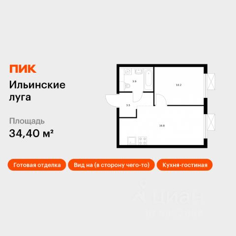 Продаётся 1-комн. квартира площадью 34,4 кв.м на 3 этаже 9 этажного дома (Корпус 2.9, Секция 1) проекта ПИК Ильинские луга. Светлый просторный подъезд на уровне земли, функциональная планировка, большие окна, c отделкой. Жилой район "Ильинские луга" находится в 10 километрах от МКАД по Новорижскому шоссе, в 20 минутах на автомобиле от станций метро "Волоколамская", "Тушинская" и "Строгино". В будущем ближе к проекту, в 9 минутах пути на машине, откроется станция "Ильинская" Рублёво-Архангельской линии, которая будет соединять Арбатско-Покровскую линию и Большую кольцевую линию. Сейчас в квартале начались продажи в корпусах 3.2, 3.3, 3.4, 3.5 и 3.6. "Ильинские луга" — масштабный проект, в который входит девять детских садов, четыре школы и поликлиника. Он строится в престижном и экологичном районе среди лесов и памятников природы. За 5 минут от жилого квартала можно доехать до Рублёво-Успенского шоссе, а за 30 минут — до центра Москвы. До крупного торгового центра "РИГАМОЛЛ" всего 5 минут на автомобиле, а до ТЦ "Твой дом" и гипермаркета "Глобус" — 10 минут. В "Ильинских лугах" строятся только девятиэтажные дома — такая архитектура соответствует спокойной жизни за городом. В каждом дворе-парке есть места для отдыха, детские и спортивные площадки. А ещё, здесь уже открыт большой PlayHub "Гравити" — современное игровое пространство с космической тематикой, холмами, зонами для игр и отдыха жителей любого возраста. На первых этажах уже работают магазины, кафе и пекарни. Места для отдыха от "Ильинских лугов" тоже недалеко: 10 минут на машине — и вы в музее-усадьбе "Архангельское". Также рядом находится Лохин остров — памятник природы, где водятся речные черепахи, есть места для кемпинга и возможность сплавиться по реке. Артикул 936131 (Застройщик ООО "СЗ "ГРАДОЛИМП")