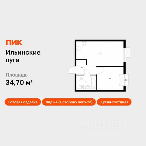 Продаётся 1-комн. квартира площадью 34,7 кв.м на 8 этаже 9 этажного дома (Корпус 2.8, Секция 4) проекта ПИК Ильинские луга. Светлый просторный подъезд на уровне земли, функциональная планировка, большие окна, c отделкой. Жилой район "Ильинские луга" находится в 10 километрах от МКАД по Новорижскому шоссе, в 20 минутах на автомобиле от станций метро "Волоколамская", "Тушинская" и "Строгино". В будущем ближе к проекту, в 9 минутах пути на машине, откроется станция "Ильинская" Рублёво-Архангельской линии, которая будет соединять Арбатско-Покровскую линию и Большую кольцевую линию. Сейчас в квартале начались продажи в корпусах 3.2, 3.3, 3.4, 3.5 и 3.6. "Ильинские луга" — масштабный проект, в который входит девять детских садов, четыре школы и поликлиника. Он строится в престижном и экологичном районе среди лесов и памятников природы. За 5 минут от жилого квартала можно доехать до Рублёво-Успенского шоссе, а за 30 минут — до центра Москвы. До крупного торгового центра "РИГАМОЛЛ" всего 5 минут на автомобиле, а до ТЦ "Твой дом" и гипермаркета "Глобус" — 10 минут. В "Ильинских лугах" строятся только девятиэтажные дома — такая архитектура соответствует спокойной жизни за городом. В каждом дворе-парке есть места для отдыха, детские и спортивные площадки. А ещё, здесь уже открыт большой PlayHub "Гравити" — современное игровое пространство с космической тематикой, холмами, зонами для игр и отдыха жителей любого возраста. На первых этажах уже работают магазины, кафе и пекарни. Места для отдыха от "Ильинских лугов" тоже недалеко: 10 минут на машине — и вы в музее-усадьбе "Архангельское". Также рядом находится Лохин остров — памятник природы, где водятся речные черепахи, есть места для кемпинга и возможность сплавиться по реке. Артикул 942876 (Застройщик ООО "СЗ "ГРАДОЛИМП")