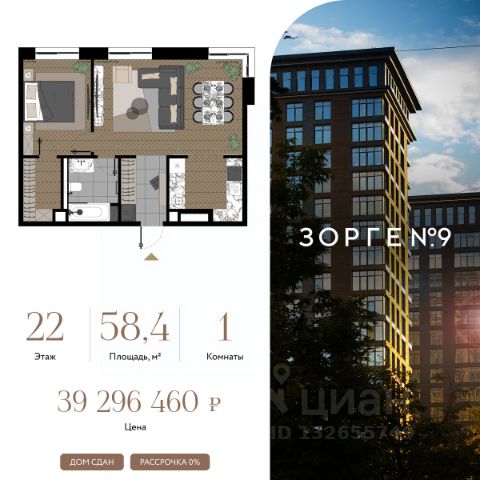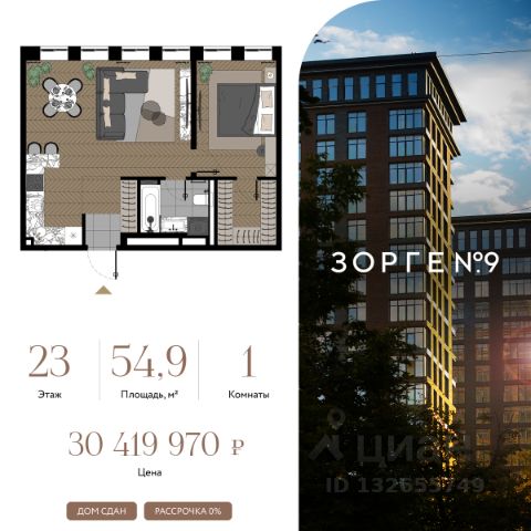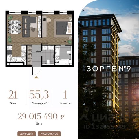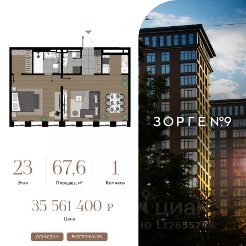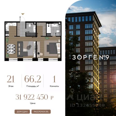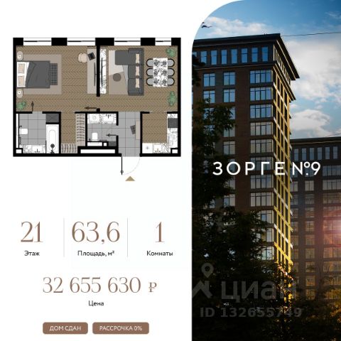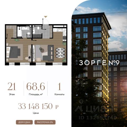 "Зорге 9" — готовый квартал апартаментов с премиальными сервисами на Ходынке. В трех корпусах с панорамными окнами предусмотрены уникальные форматы площадей, удовлетворяющие самый взыскательный вкус. В 7 минутах ходьбы от "Зорге 9" расположены 4 станции метро: Полежаевская", "Хорошевская", "Зорге" и "Хорошево". До делового центра "Москва-Сити" 10 минут на автомобиле. Простота форм, строгие линии, панорамные окна, архитектурное освещение и арт-объекты поддержат атмосферу роскоши и комфортной жизни на Ходынке. Именно за яркую архитектуру апарт-комплекс "Зорге 9" получил престижную международную премию European Property Awards. Комплекс полностью введен в эксплуатацию. "Зорге 9" — территория инноваций. Высокие потолки и панорамные окна Guardian ClimaGuard Solar с энергоэффективным "умным" напылением. Предусмотрен ряд премиальных сервисов: вход по Face ID, мобильное приложение резидента, дающее доступ ко всем услугам в один клик, 500 видеокамер на территории, двухуровневый подземный паркинг с автоматическим шлагбаумом, зарядкой для электромобилей, велосейфом и станцией подкачки шин. В "Зорге 9" можно рассмотреть варианты площадей от 27 до 81 кв. м, свободной планировки, с окнами в пол и высотой потолков до 4,3 м, а также уникальные форматы пространств. Апартаменты с террасами позволят создать дополнительное рабочее пространство или зону отдыха на свежем воздухе, а тканевые маркизы помогут создать тень и повысить уровень приватности. Угловое остекление станет особой изюминкой и украсит любой интерьер. На последних этажах предусмотрены пентхаусы с каминами и выходами на кровлю: от 150 кв. м жилья high-уровня с максимальным уровнем инсоляции — на потолках в пентхаусах появятся так называемые "световые фонари". "Зорге 9" СДАН, все корпуса введены в эксплуатацию. Купить 1-комнатную квартиру в готовой новостройке рядом с метро Полежаевская.