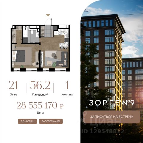 "Зорге 9" — готовый квартал апартаментов с премиальными сервисами на Ходынке. В трех корпусах с панорамными окнами предусмотрены уникальные форматы площадей, удовлетворяющие самый взыскательный вкус. В 7 минутах ходьбы от "Зорге 9" расположены 4 станции метро: Полежаевская", "Хорошевская", "Зорге" и "Хорошево". До делового центра "Москва-Сити" 10 минут на автомобиле. Простота форм, строгие линии, панорамные окна, архитектурное освещение и арт-объекты поддержат атмосферу роскоши и комфортной жизни на Ходынке. Именно за яркую архитектуру апарт-комплекс "Зорге 9" получил престижную международную премию European Property Awards. Комплекс полностью введен в эксплуатацию. "Зорге 9" — территория инноваций. Высокие потолки и панорамные окна Guardian ClimaGuard Solar с энергоэффективным "умным" напылением. Предусмотрен ряд премиальных сервисов: вход по Face ID, мобильное приложение резидента, дающее доступ ко всем услугам в один клик, 500 видеокамер на территории, двухуровневый подземный паркинг с автоматическим шлагбаумом, зарядкой для электромобилей, велосейфом и станцией подкачки шин. В "Зорге 9" можно рассмотреть варианты площадей от 27 до 81 кв. м, свободной планировки, с окнами в пол и высотой потолков 3,15 м, а также уникальные форматы пространств. Апартаменты с террасами позволят создать дополнительное рабочее пространство или зону отдыха на свежем воздухе, а тканевые маркизы помогут создать тень и повысить уровень приватности. Угловое остекление станет особой изюминкой и украсит любой интерьер. На последних этажах предусмотрены пентхаусы с каминами и выходами на кровлю: от 150 кв. м жилья high-уровня с максимальным уровнем инсоляции — на потолках в пентхаусах появятся так называемые "световые фонари". "Зорге 9" СДАН, все корпуса введены в эксплуатацию. Купить 1-комнатную квартиру в готовой новостройке рядом с метро Полежаевская.