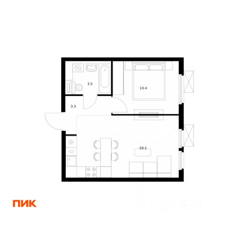 • ✅ Минимальная площадь: 34,8 м²