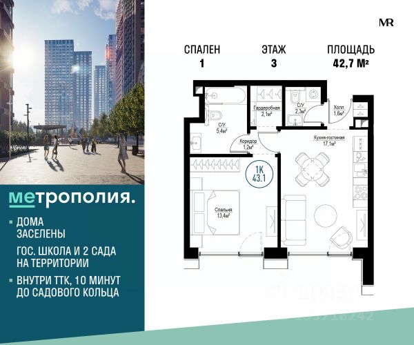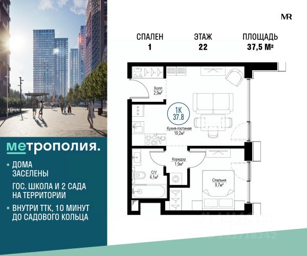 Продаётся 1-комнатная квартира общей площадью 37.60 м², на 14 этаже. Метрополия - это город городов. Коллекция лучших решений из самых прогрессивных мегаполисов планеты. Для тех, кому комфортно в любой точке мира. Все корпуса выполнены в своем индивидуальном стиле и получили свои названия в честь мировых метрополий. Эта концепция сохраняется и в дизайнерских лобби, которые выполнены в едином стиле с детальной проработкой декора и использованием характерных для каждого мегаполиса материалов. Высотные здания "Метрополии" образуют благоустроенное дворовое пространство на 4,6 га, которое украсят более 400 деревьев и несколько сотен кустарников, живописные цветочные клумбы и аккуратные газоны. Территория комплекса продумана до мелочей: - Запланировано строительство государственной школы, а также 2 частных и одного государственного детских садов; - Сформированы несколько тематических зон; - Предусмотрено место для спокойного отдыха с кафе; - Зона активности для сторонников здорового образа жизни с тренажерами для воркаута и площадкой для стритбола и петанка. Детские площадки разделены по возрастам от малышей до подростков, на всех площадках используется оборудование европейского производителя, уложено резиновое покрытие, которое позволяет детям играть в полной безопасности. Современные инженерные решения не оставят вас равнодушными: - Скоростные и бесшумные лифты; - Пожарная и охранная сигнализация; - Система навигации с ночной подсветкой по всей территории комплекса; - Wi-Fi-покрытие в зоне лобби и по всей территории комплекса; - Система распознавания лиц для доступа на территорию ЖК; - Система контроля и учета энергоресурсов; - Контроль доступа на парковку по системе считывания номеров.