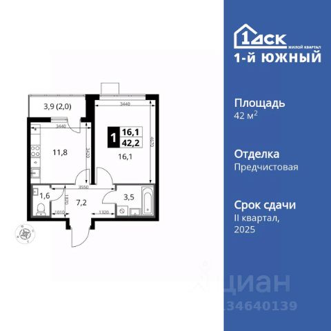 Прямая продажа от застройщика! Жилой Комплекс класса Комфорт Плюс. Продаётся 1-к квартира номер 182 общей площадью 34.4 кв.м. на 16-м этаже 24 этажного здания. Отделка Whitebox. Цена с учётом скидки. Особенности квартиры: - МЦД-5 в пешей доступности - Квартал с южным садом - Свои 3 детских сада и 2 большие школы - Линейная планировка - максимальная функциональность и удобство. - Просторная кухня - место для семейных ужинов и кулинарных экспериментов. - Просторная мягкая зона - комфорт и уют для отдыха всей семьи. - Возможность добавить спальное место - дополнительный комфорт для гостей. - Ниша под шкаф - компактное и удобное место для вещей. - Лоджия - уютное место для отдыха и тишины. Квартира с предчистовой отделкой (White box). Вам не придется заниматься черновыми и трудоёмкими работы, а чистовую отделку и дизайн - сделайте на свой вкус. Информация о комплексе: Одно из преимуществ проектов 1- ДСК большие застекленные лоджии. Другое преимущество честный евро-формат. Во всем проекте предусмотрена система Умный дом. В состав устанавливаемого пакета устройств входит: WiFi реле для управления группами потребителей, беспроводной кран перекрытия с эл. приводом, беспроводной сенсор протечки, Яндекс Станция Мини. Его расположение можно назвать удачным за счет транспортной доступности и близости к природным объектам. По соседству лес, а в каждом дворе плодовые деревья. Весной квартал окутывает бело-розовое облако: это цветут яблони, груши, сливы. К августу в воздух наполняется ароматом созревших плодов. Зимой среди покрытых инеем деревьев протянулась лыжня. Транспортная доступность: - Общественный транспорт: Действующая ж/д станция Булатниково (в перспективе будущая МДЦ D5) в пешей доступности, всего 10-12 минут. - Личный автотранспорт: Удобный выезд на трассу М4-Дон в сторону Москвы и области 850 м, до МКАД - 1 км Внутренняя инфраструктура: Красивые продуманные подъезды - еще одно преимущество проекта 1-й Южный. Вход в сквозные подъезды есть и с улицы, и со двора. Благодаря сплошному остеклению в них всегда светло и уютно. Подъезды расположены на уровне земли, поэтому и молодым родителям с коляской, и жильцам с ограниченными возможностями вход и выход неудобств не доставят. В помещении предусмотрено место под стойку ресепшен с выводом инженерных сетей. Если жильцы решат на общем собрании, что необходим охранник или консьерж, организовать для них рабочее место можно быстро и с минимальными затратами. В подъездах предусмотрены уборные для детей и взрослых. Колясочные в каждом подъезде позволяют поддерживать порядок и чистоту на этажах. На случай прогулки с четвероногим питомцем в непогоду в подъездах устроены лапомойки. Во дворах и на общественных территориях 1-ого Южного столько всего интересного для юных обитателей. Собственные 3 детских сада и 2 больших школы буквально под окнами Изюминка проекта - пешеходный бульвар-дендрарий, он идеален для семейных прогулок. По сторонам прогулочной зоны разместились точки