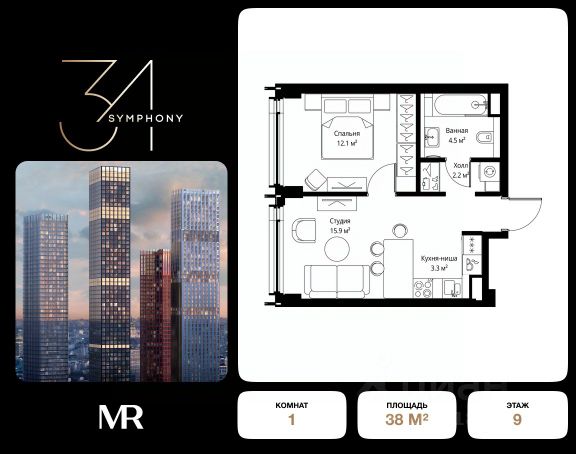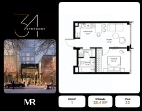Дом сдан. Ключи в день покупки! В продаже 1-комнатная квартира площадью 41 м² с предчистовой отделкой на 10 этаже 49 этажного дома в корпусе Кристал. ЖК Симфония 34 - концептуально новый жилой комплекс премиум-класса с подземной парковкой, состоит из четырех башен высотой 36 - 54 этажа. Квартиры сдаются с базовой (предчистовой) отделкой MR BASE или дизайнерской чистовой отделкой MR READY. Высота потолков 3 - 6 метров, окна высотой до 2,6 м. Более 100 кладовых в подземной части ЖК и более 500 на этажах. Безопасность - Система контроля входа на территорию комплекса, биометрия - Система автоматического водяного пожаротушения и противопожарного водопровода, система пожарной вентиляции - Доступ на парковку при помощи системы распознавания автомобильных номеров, карточка для контроля доступа резидентов - Система видеонаблюдения - Круглосуточная связь через приложение, телефон, голосовые сообщения с охраной, консьержем, call-центр. Расположение Пешком - 6 минут до метро "Дмитровская" - 15 минут до Тимирязевского парка На машине - 5 минут до Савеловского вокзала и Аэроэкспресса в Шереметьево - 10 минут до Москва-Сити и Садового кольца Благоустройство - 70% территории отведены под зеленые насаждения и ландшафтный дизайн - Приватный Японский сад - Детские площадки с зонированием по возрасту - Clubhouse для резидентов - Wellness & SPA - Зона для пикника, зона с гамаками - Центральное лобби, ресторан, коммерческие помещения - Дополнительный вход/выход на территорию комплекса Окружение - В 10 минутах от Symphony 34 находится дизайн-завод Flacon, где регулярно проходят культурно-образовательные и развлекательные мероприятия - Тимирязевский парк расположен в 850 м. Площадь парка 232 га - Рядом расположен парк "Дубки", площадью 16,5 га. - В 15 минутах расположен Хлебозавод 9. Здесь находятся шоурумы брендов, кафе разных кухонь мира, образовательные проекты и площадки для мероприятиКомпания MR предлагает своим клиентам специальные условия приобретения квартир в рамках программ ипотечного кредитования от банков-партнеров.