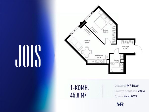 10 минут от Москва-Сити В продаже квартира площадью 46.76 м² без отделки на 3 этаже 46 этажного дома. Квартира расположена в корпусе Leo. Джойс — это премиальный жилой комплекс от девелопера MR в районе Хорошёво-Мнёвники. Он включает несколько эффектных небоскрёбов высотой 47-56 этажей, эксклюзивные форматы квартир с панорамным остеклением, подземный двухуровневый паркинг на 239 м/м, собственную приватную инфраструктуру, закрытый ландшафтный парк 2,3 Га с функциональным зонированием и охраняемой территорией. Над проектом работали лучшие команды международных агентств с многолетним опытом: Genpro, S&P, iLight International и другие. Расположение Пешком: - 5 мин. ст. МЦК "Хорошёво"; - 15 мин. ст. м. "Народное ополчение"; - 10 мин. ст. метро "Звенигородская" с 2027 года; - 20 мин. причал "Карамышевский". На автомобиле: - 3 мин. до Звенигородского шоссе; - 5 мин. до ТТК: - 8 мин. до Серебряного бора и Строгинского затона - 10 мин. до ММДЦ "Москва-Сити"; - 40 мин. до аэропорта "Шереметьево"; Благоустройство - собственный ландшафтный парк 2,3 Га; - парк скульптур от Cosmoscow; - консьерж-сервис 24/7; - сервисный лифт и вход; - игровые и спортивные площадки; - коворкинг с библиотекой; - лаунж-зона с камином; - игровые комнаты для детей и клуб для подростков с оборудованием для видеоигр; - спортивная студия для индивидуальных тренировок; - гостиная с мини-кухней; - зоны для выгула собак; - подогрев пешеходных дорожек в зимний период; - автополив зелёных насаждений; - премиальные рестораны, кафе, химчистки, аптеки и супермаркеты. Окружение - 4 парка: Покровское-Стрешнево, Филёвский парк, Серебряный бор и Берёзовая роща; - 15 общеобразовательных заведений, в том числе две школы из самых лучших в Москве: государственная школа "Интеграл" и частная "Хорошкола"; - спортивное сооружение "ВЭБ Арена", домашний стадион ФК ЦСКА; - крупнейший в Европе торгово-развлекательный центр "Авиапарк". 1-комнатная квартира в ипотеку в новостройке в районе Хорошево-Мневники в Москве.