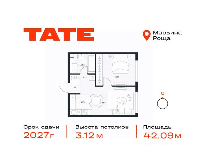 Указанная акционная стоимость доступна при 100% оплате или ипотеке без субсидирования. Цена действует до 10.11.2025 23:58:59. Стоимость без акции 25154285. Продаётся 1-комнатная квартира от застройщика в ЖК премиум-класса TATE на 16 этаже. Общая площадь 41,13 м². Отделка предчистовая (white box). Башня В. Срок сдачи: 2 кв. 2027 Выдача ключей: 4 кв. 2027 Проект расположен на границе с ЦАО в районе Марьина Роща на улице Веткина. В шаговой доступности находится метро Марьина роща (5 минут), парки Останкино и Сокольники (15 минут). До центра столицы время в пути составит 15 минут на авто. На территории премиум квартала откроют спа- и фитнес-центр, бассейн, оборудуют детские и спортивные площадки. Предусмотрен подземный двухуровневый паркинг с контролем доступа и лифтом на жилые этажи. Паркинг рассчитан на 568 машино-мест. Доступ в жилой комплекс осуществляется по биометрическому контролю - Face ID. Территория закрытая с видеонаблюдением и консьерж-сервисом 24/7. Особенности башни В • Потрясающие виды на 4 стороны: Москва-Сити | Останкино | ВДНХ | Тимирязевский парк • Уголовок остекление • Большие метражи квартир • Кладовые на этаже • Квартиры с мастер-спальнями и гардеробными Особенности ЖК: - Исторический район; - Панорамная лаундж-зона на высоте 140 м; - На 4041 этажах видовые пентхаусы площадью до 200 м²; - Два вида отделки: лаконичный и монохромный WhiteBox или готовые интерьеры с безупречным чувством меры - Лобби с потолками высотой почти 6 м; - В отдельном 6-этажном здании на территории будут: просторный фитнес-центр с бассейном, концептуальный ресторан, офисные пространства; - Детские зоны и спортивные площадки; - 6 скоростных лифтов; - Лапомойки для животных; - Безбарьерная среда. Купить 1-комнатную квартиру в ипотеку в новостройке в районе Марьина роща в Москве.