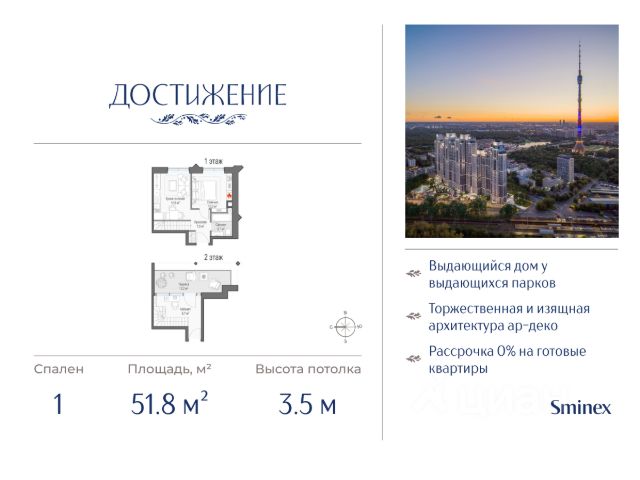 Рядом — Парк Останкино, ВДНХ, Сокольники, Гончаровский парк, дизайнзавод Flacon и "Хлебозавод". До центра Москвы на авто — 15 мин.