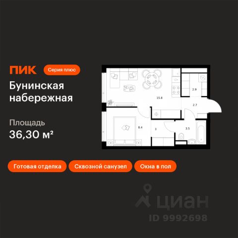 Продаётся 1-комн. квартира площадью 37,9 кв.м на 2 этаже 16 этажного дома (Корпус 2.6/1.2, Секция 2) проекта ПИК Бунинская набережная. Светлый просторный подъезд на уровне земли, функциональная планировка, большие окна, предчистовая отделка. Удобное расположение: 18 минут пешком от м. "Потапово" и 12 минут на автомобиле до станции "Бунинская аллея". 12 минут на автомобиле до трассы Солнцево — Бутово — Варшавское шоссе. 20 минут на автомобиле до МКАД и Калужского шоссе. 1520 минут езды до живописных парков: "Бутовский лесопарк", заказник "Южное Бутово". Особенности проекта Камерный квартал в Новой Москве, на берегу Ивановского пруда. Одна из ключевых особенностей проекта — квартиры с панорамным видом на воду. Архитекторы вдохновились локацией проекта: природные оттенки и активная пластика корпусов напоминают рельефные выступы на берегу, а окна отражают водную гладь, визуально объединяя дома с природой. Преимущества проекта Светлые и просторные лобби с зонами ожидания. Подземный паркинг. Набережная и пешеходная аллея для прогулок. Парк на склоне с игровой зоной. Готовая инфраструктура района: 3 школы, 6 детских садов, взрослая и детская поликлиники. Артикул 968474 Купить 1-комнатную квартиру в ипотеку в новостройке рядом с метро Коммунарка.