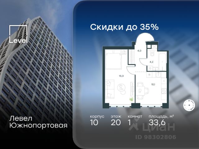 Цена указана с учётом скидки при 100%-й оплате, несубсидированной ипотеке, рассрочке (кроме программы "Рассрочка 0%"). В северной части района Печатники продается 1-комнатная квартира площадью 50.50 кв.м без отделки. Квартира расположена на 15 этаже 16-этажного корпуса 11 в жилом комплексе комфорт-класса Левел Южнопортовая (компания Level Group/Левел групп). Отличная транспортная доступность: - 10 мин. пешком до станции метро "Кожуховская"; - 20 мин. пешком до станции МЦК "Дубровка"; - 3 мин. на авто до ТТК; - 13 мин. на авто до Садового кольца; - 15 мин. на авто до Бульварного кольца. Продуманный архитектурный проект: - авторская архитектура от бюро СПИЧ; - уникальные виды на реку, парки и достопримечательности города; - высота потолков в квартирах до 6 м; - окна высотой до 1,87 м с высоким коэффициентом сопротивления теплоотдаче. Расположение: Жилой комплекс Левел Южнопортовая строится в северной части района Печатники - самой приближенной к центру. Здесь будет сформирован новый район "Южный порт", где построят крупный жилой и общественно-деловой центр, аналогичный Москва-Сити. В течение 10-12 лет в этом месте появятся не только жилые дома, но и развитая инфраструктура для жизни и работы. А еще совсем рядом находится набережная Москвы-реки, где планируется построить причалы для речных трамвайчиков и канатную дорогу. Уже сейчас вокруг жилого комплекса работают десятки магазинов и торговых центров, рядом расположено 6 парков, среди которых музей-заповедник "Коломенское". В 10 минутах пешком - 2 муниципальных и 2 частных детских сада, 7 общеобразовательных школ. Внутренняя инфраструктура: Для отдыха жителей в каждом корпусе предусмотрено лобби, оснащенное местами для отдыха, гостевыми санузлами и лапомойками, а в отдельных корпусах - камином. За счёт больших окон и высоких потолков пространства будут наполнены воздухом и светом. На первых этажах жилого комплекса откроются магазины, салоны красоты, фитнес-центр. Для детей строятся собственные детский сад и школа. Благоустройство: Внутренний двор комплекса разработан совместно с бюро GAFA. Основная идея - создать аналог Центрального парка в Нью-Йорке, гармонично сочетая высотные здания и большое изолированное парковое пространство. Вся площадь двора-парка будет огорожена и составит более 2 га, из которых 45% - озеленение. Одним из самых важных ландшафтных элементов здесь станет небольшая речка, наполняющаяся во время дождя. Вокруг неё появится сеть из островов, внутри которых расположатся тематические зоны спорта и отдыха. Технологии и инженерия: - автоматическая передача в управляющую компанию показаний квартирных счётчиков; - телефонная связь, телевидение и интернет на базе оптической мультисервисной сети; - гостевой Wi-Fi в лобби и на территории двора; - единый ключ доступа для входа на территорию комплекса.